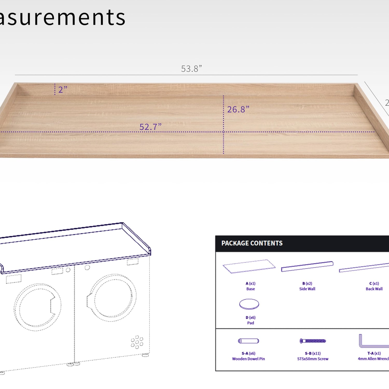 Life Finds Washer Dryer 54 inch Countertop with Safety Ledge for Laundry Room Organization, Light Wood, LF-WDCT1C