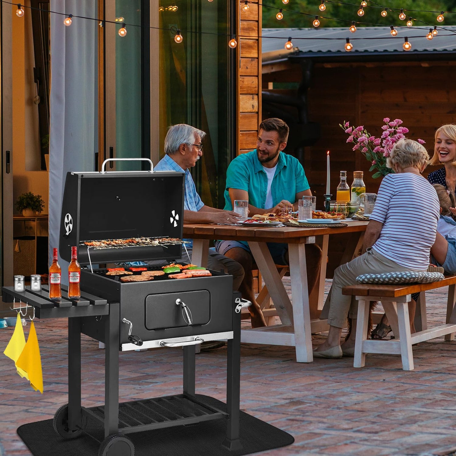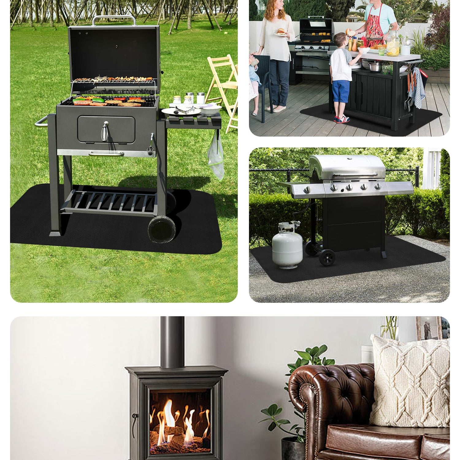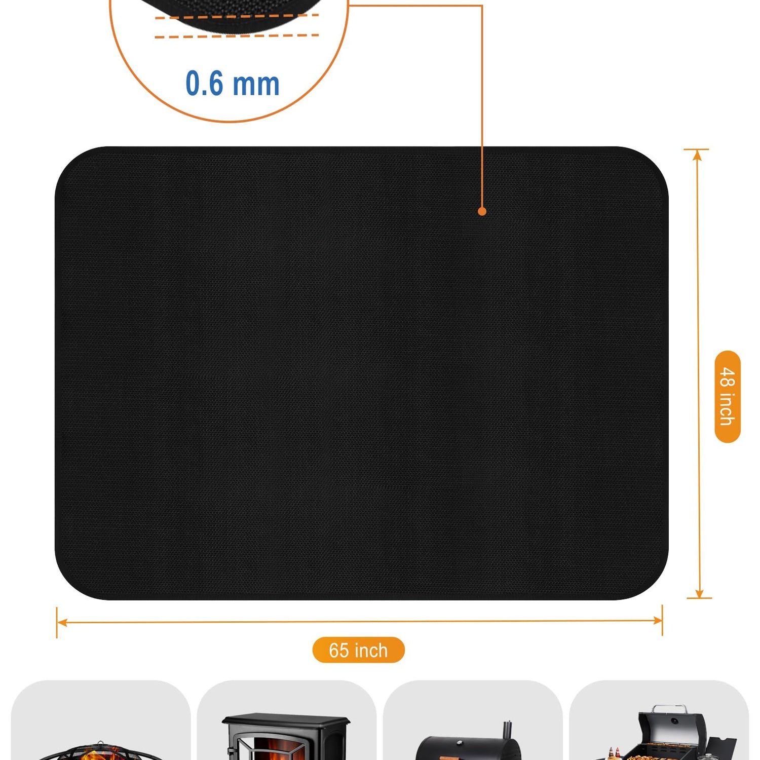 - LXLZSH Under Grill Mat:Large size fireproof mat 48*65 inches,0.6mm thickness,can be securely fastened under the grill,can also be used as a fireplace mat and fire pit mat,protects your deck,patio,or garage floor from stains and damages,prevents sparks and grease splatters,easy to clean,make outdoor grilling a breeze