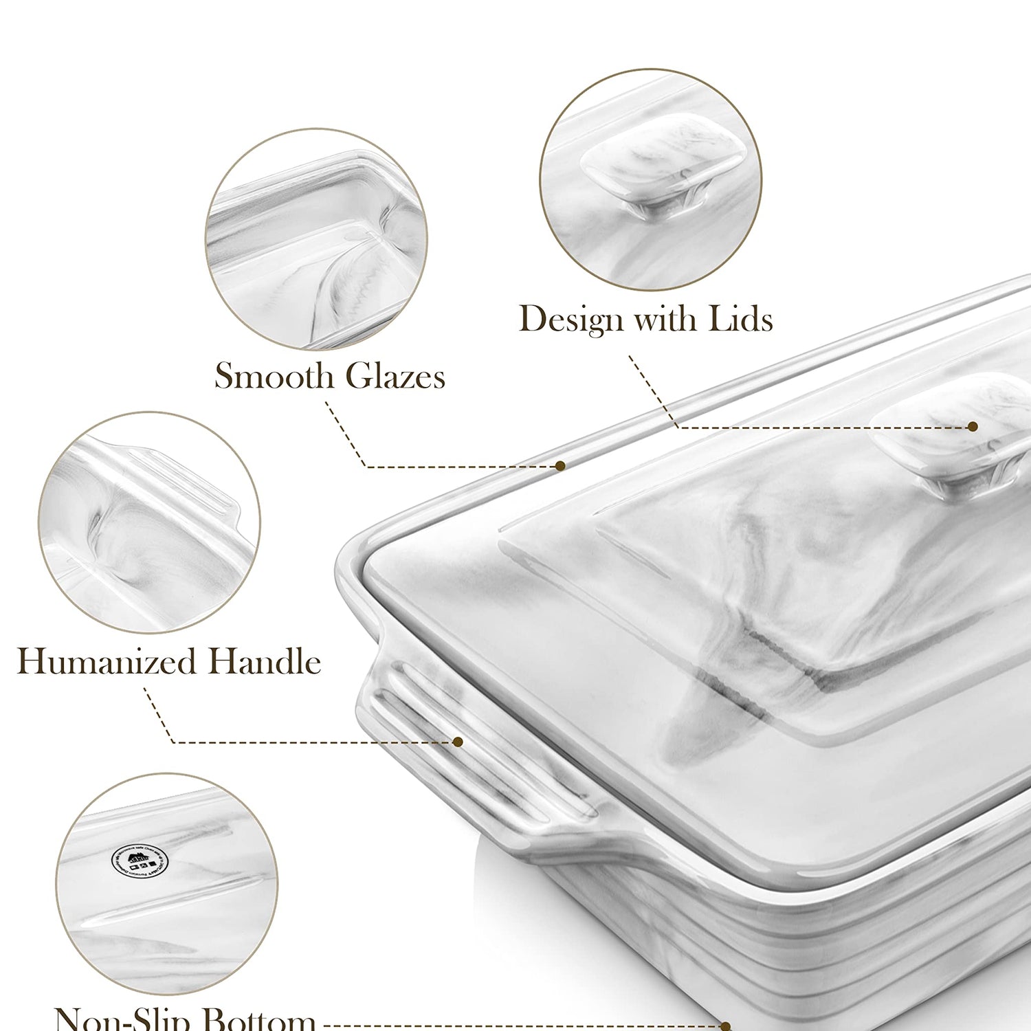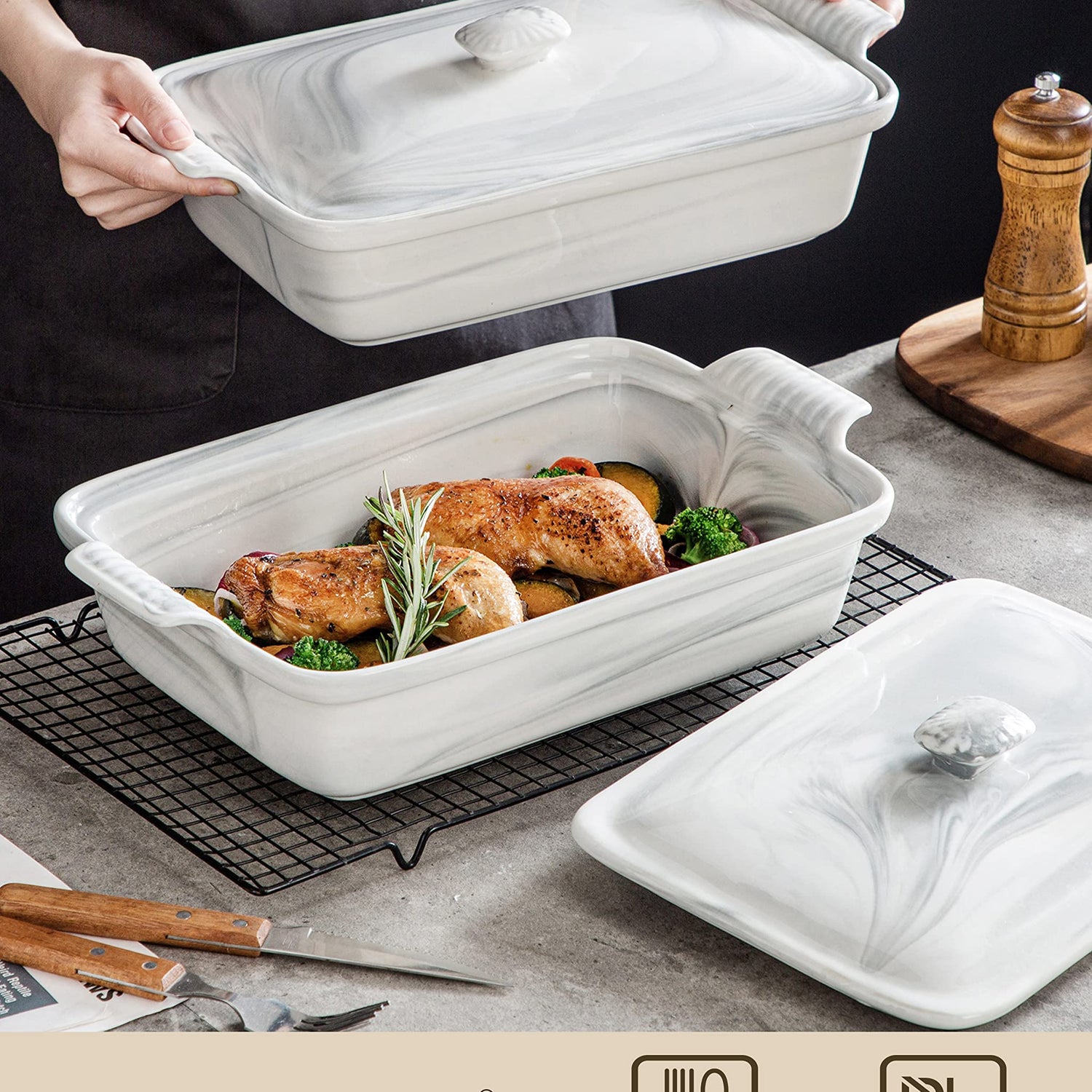 - 【HIGH QUALITY CERAMIC】This Casserole Dish with lid is able to transfer heat evenly to ensure even cooking and maintain the flavor of the food, this lid keeps the food moist and prevents the baked food from drying out.
