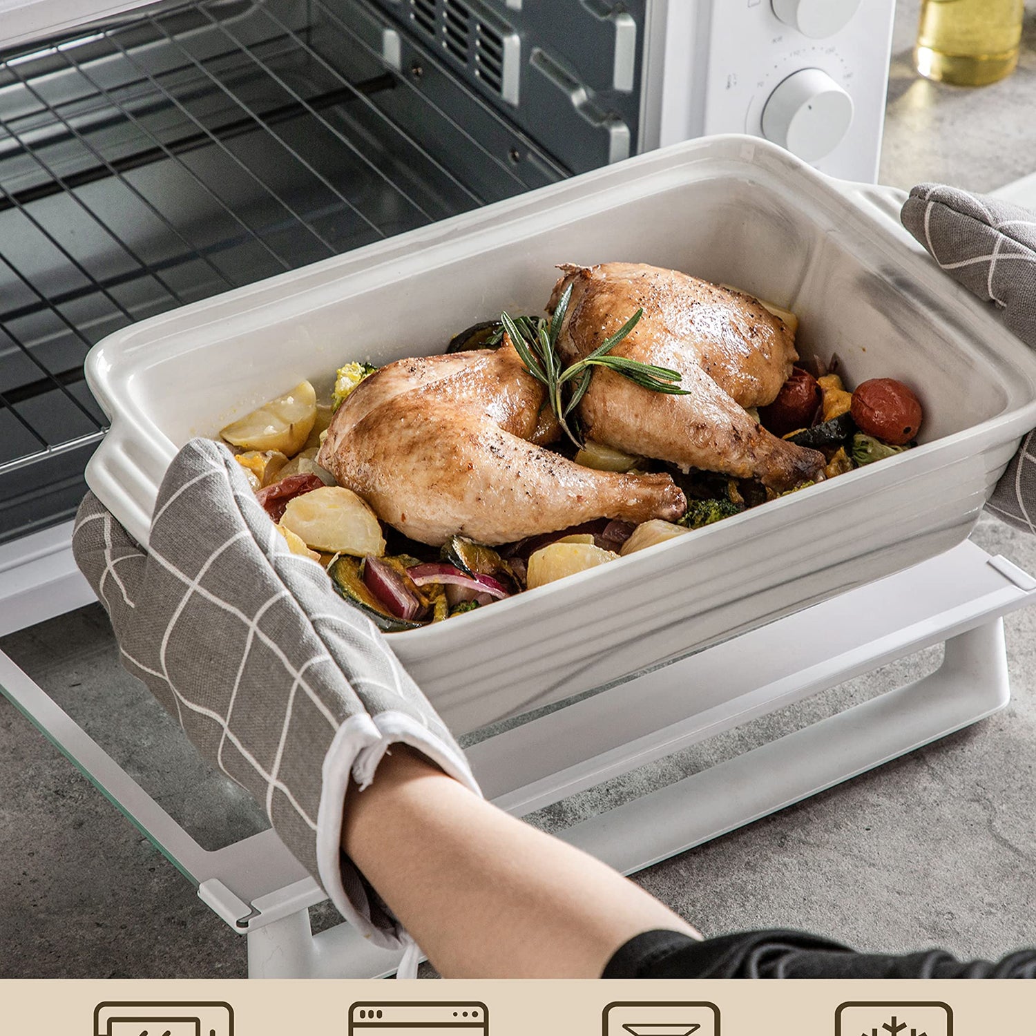 - 【SAFETY UNDER HIGH TEMPERATURE】This 4.4-quart size, 13 x 9 inches, large casserole is made of high quality ceramic, oven safe up to 428°F. It can be used in the oven, microwave, refrigerator and dishwasher. NOTE: No direct fire and induction cooker.