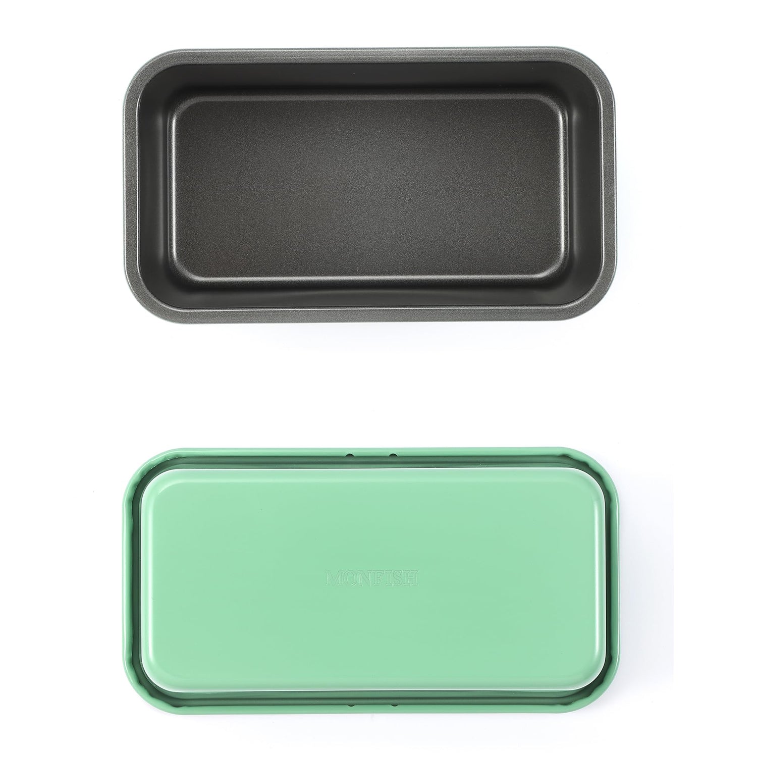 - SPECIAL COLOR DESIGN - Our standard size loaf pans come with a gray smooth non-stick coating so you can easily release your treats when they're done baking. And the bottom of the loaf bread baking pan is rosemary green. The colorful design of the home baking loaf pan can add more delight for your kitchen.