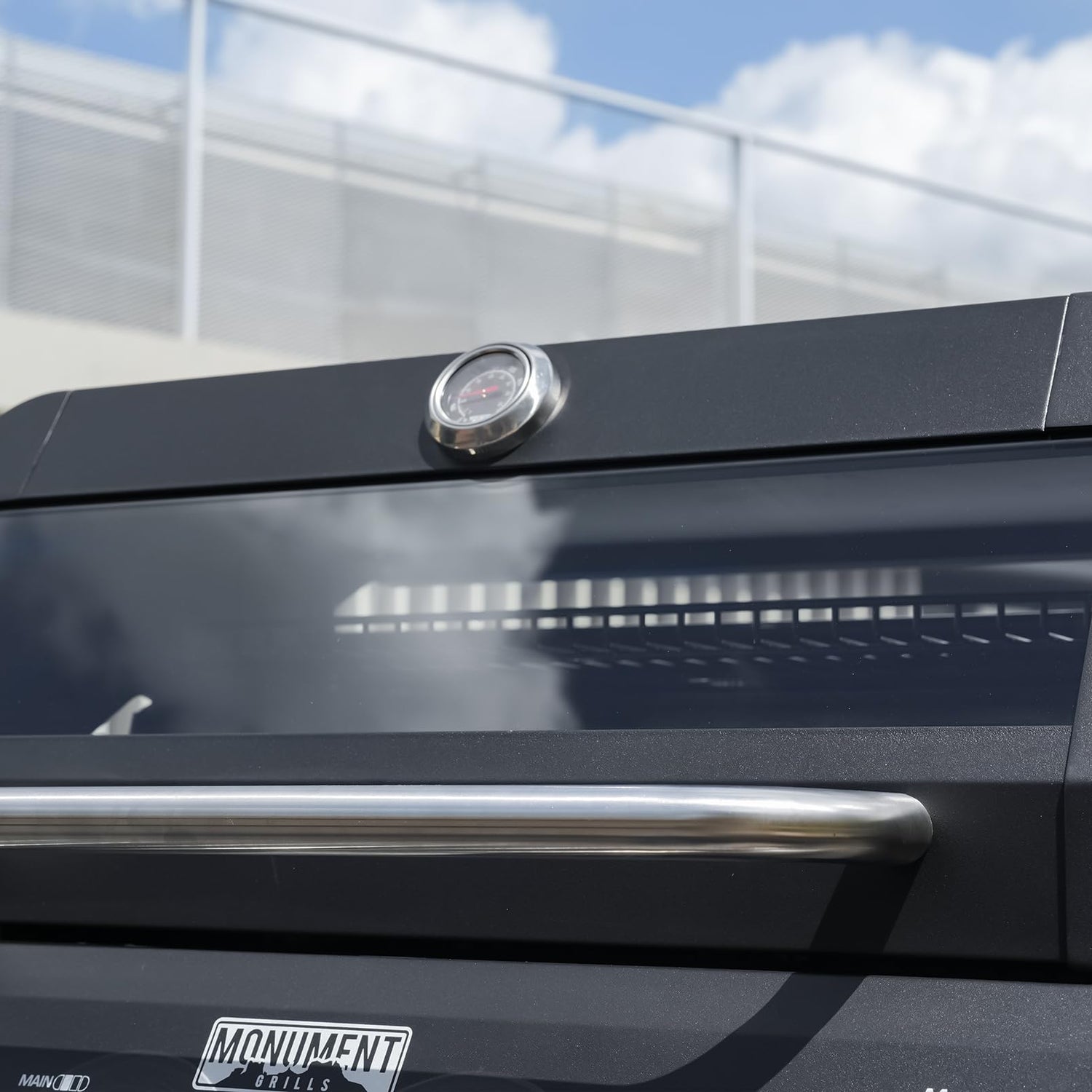 - Additional Features: This grill includes a removable grease tray, a built-in thermometer, 4 hooks for your grilling tools, and a propane tank bracket for added stability.