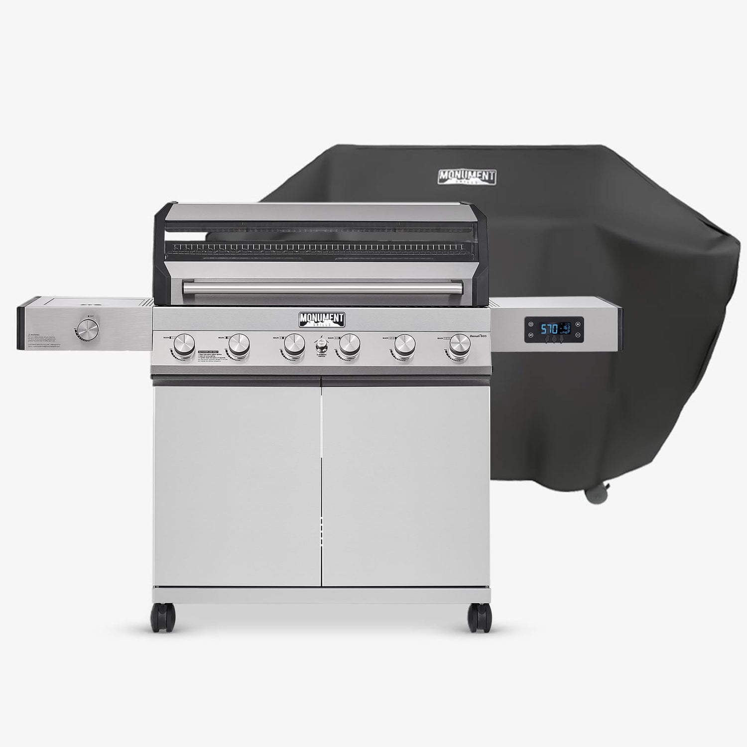 Monument Grills 6-Burner Convertible Natural Gas Smart bbq Grill Stainless Steel Denali 605 with BBQ Cover
