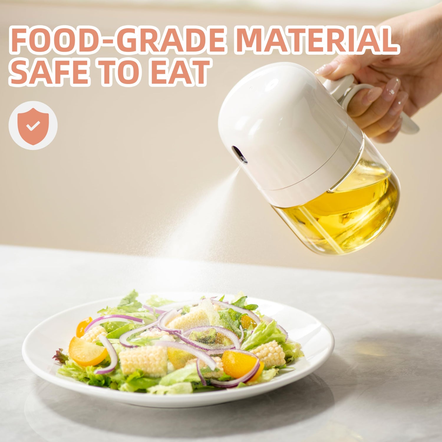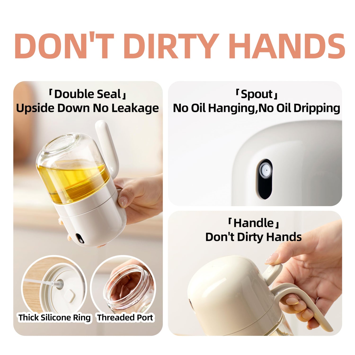 • NO DIRTY HANDS DESIGN: The olive oil spray bottle is designed with a front-facing protruding nozzle and a rear-facing comfort handle, which allows users to get a fine, even and pure oil mist, so that users won't get their hands dirty when pouring or spraying the oil