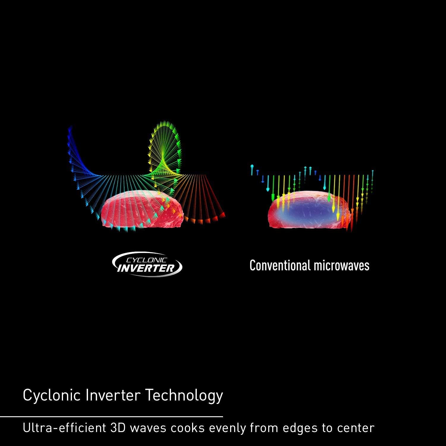 - Delicious Food, Smarter Cooking with Panasonic Microwaves: Panasonic patented Cyclonic Wave Inverter technology evenly circulates heat in 3D waves for more even, efficient cooking with delicious results