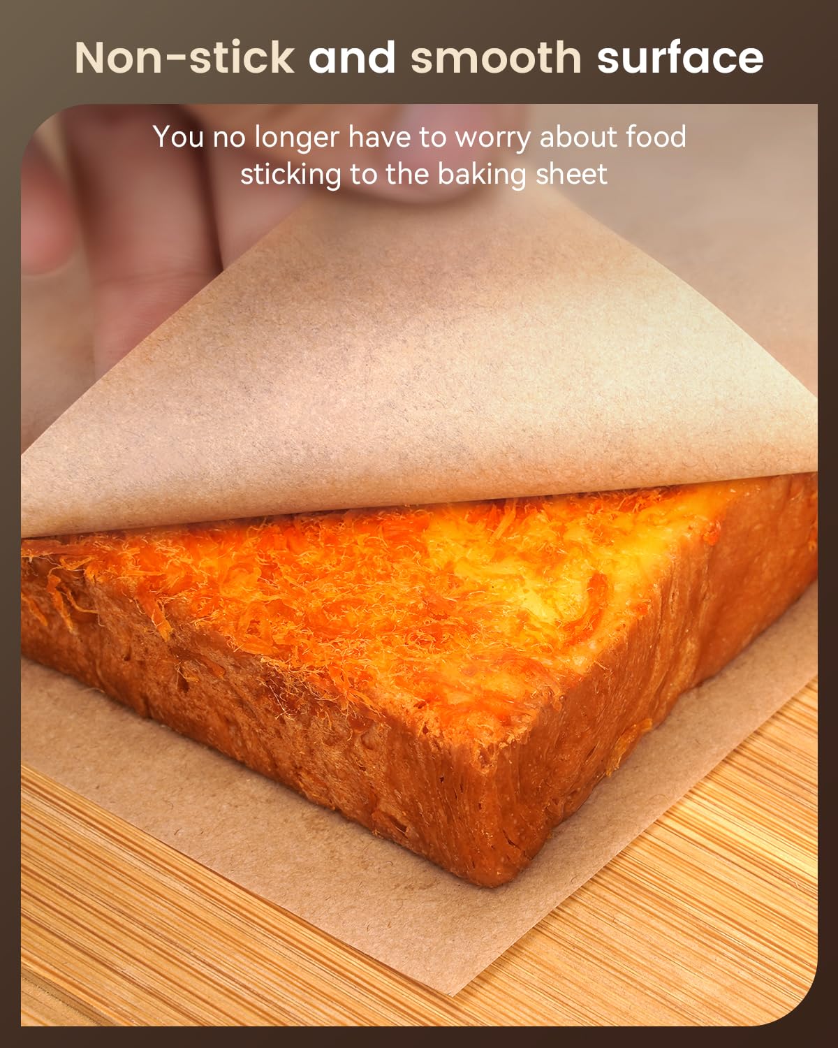 - Natural, Unbleached Parchment Paper: Made from natural wood pulp, our parchment paper baking sheet is completely free from fluorescent agents, chlorine, and other harmful chemicals. It's food-grade, waterproof and BPA-FREE.
