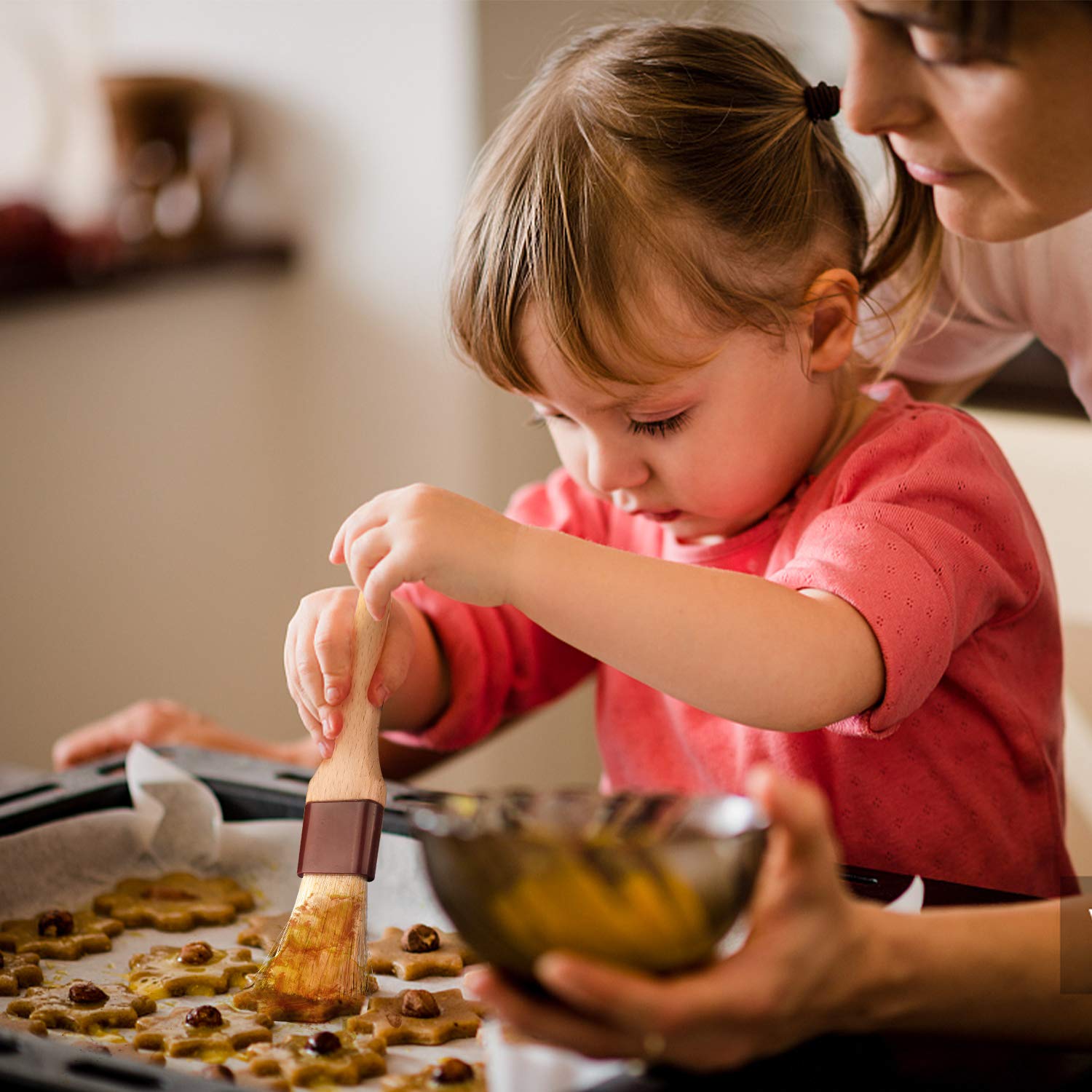 - Wooden Handle: the baking brushes are equipped with a solid wood handle, very comfortable and smooth to hold and Non-Thermal conduction
