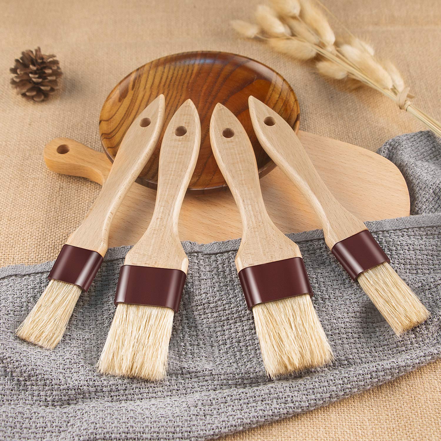 Pastry Brushes for Baking Basting Brush with Boar Bristles and Beech Hardwood Handles Culinary Oil Brush for Barbecue Butter Grill BBQ Sauce Baster Marinade Kitchen Food Cooking Brushes (1/1.5-4PCS)