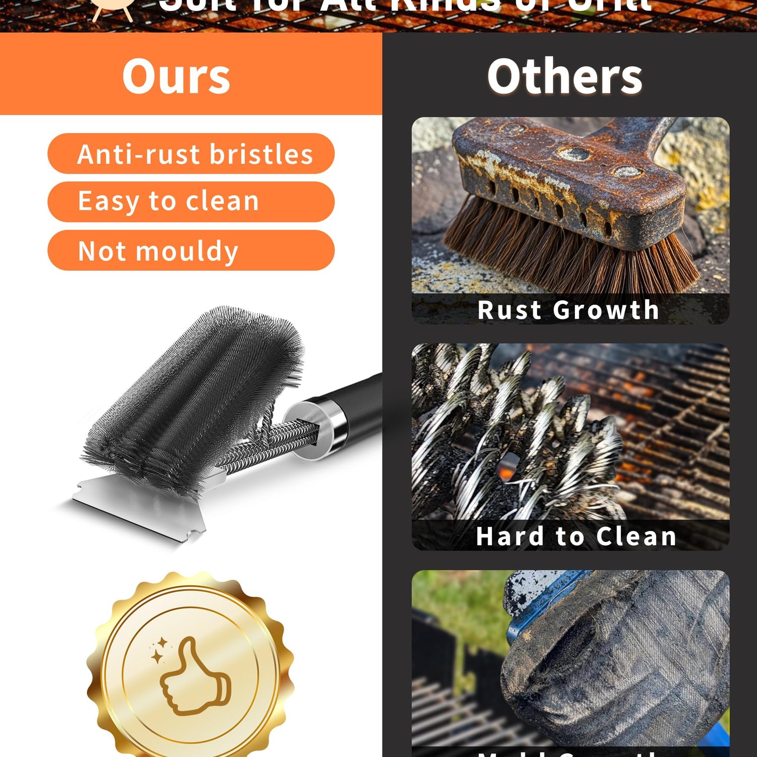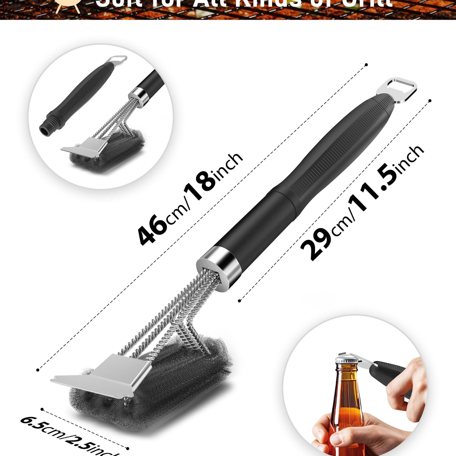 - Convenient Features: This grill brush also features a built-in bottle opener, adding extra functionality to your outdoor grilling experience.
