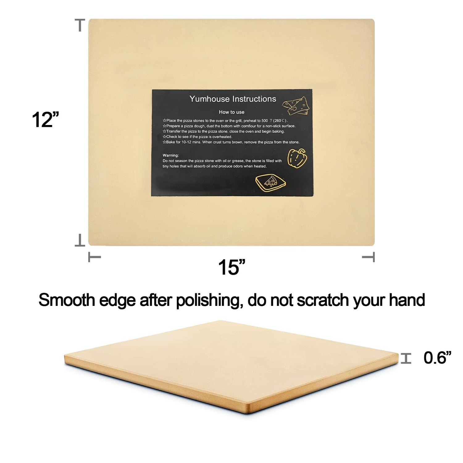 • 🍕【1400℉Temperature Resistance】Stronger than ceramic stone.Yumhouse pizza stone for grill is made from cordierite, which has a very low and uniform coefficient of thermal expansion (The lower, the better the thermal stability) and a very high decomposition temperature, withstanding temperatures up to 1400℉ without cracking!However, we cannot accurately estimate the breakage during the shipping process. If there is any problem with the pizza stone you receive, please contact us to solve it.