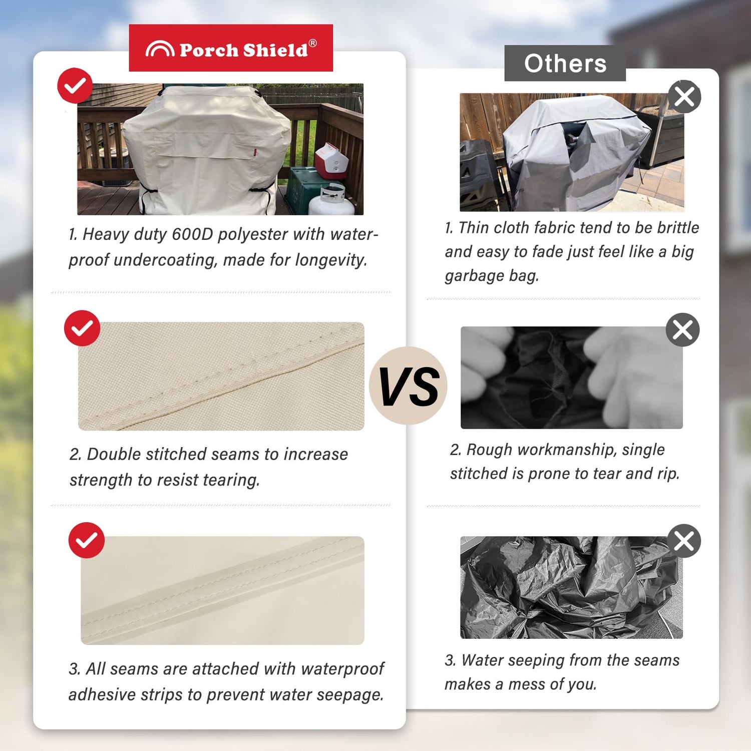 Porch Shield 58W x 24D x 46H inch Premium Gas Grill Cover Up to 56 inch, Waterproof and Fade Resistant 600D BBQ Covers for Weber, Brinkmann, Char-Broil and More, Light Tan
