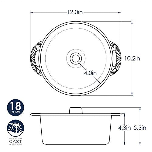 Details: Ideal for tube cakes, angel food and sponge cakes, this durable cast aluminum pan will provide superior baking performance. Baked goods will rise evenly, cook uniformly and have a delicious golden crust. Foods will release easily and clean up will be painless with the premium non-stick surface.