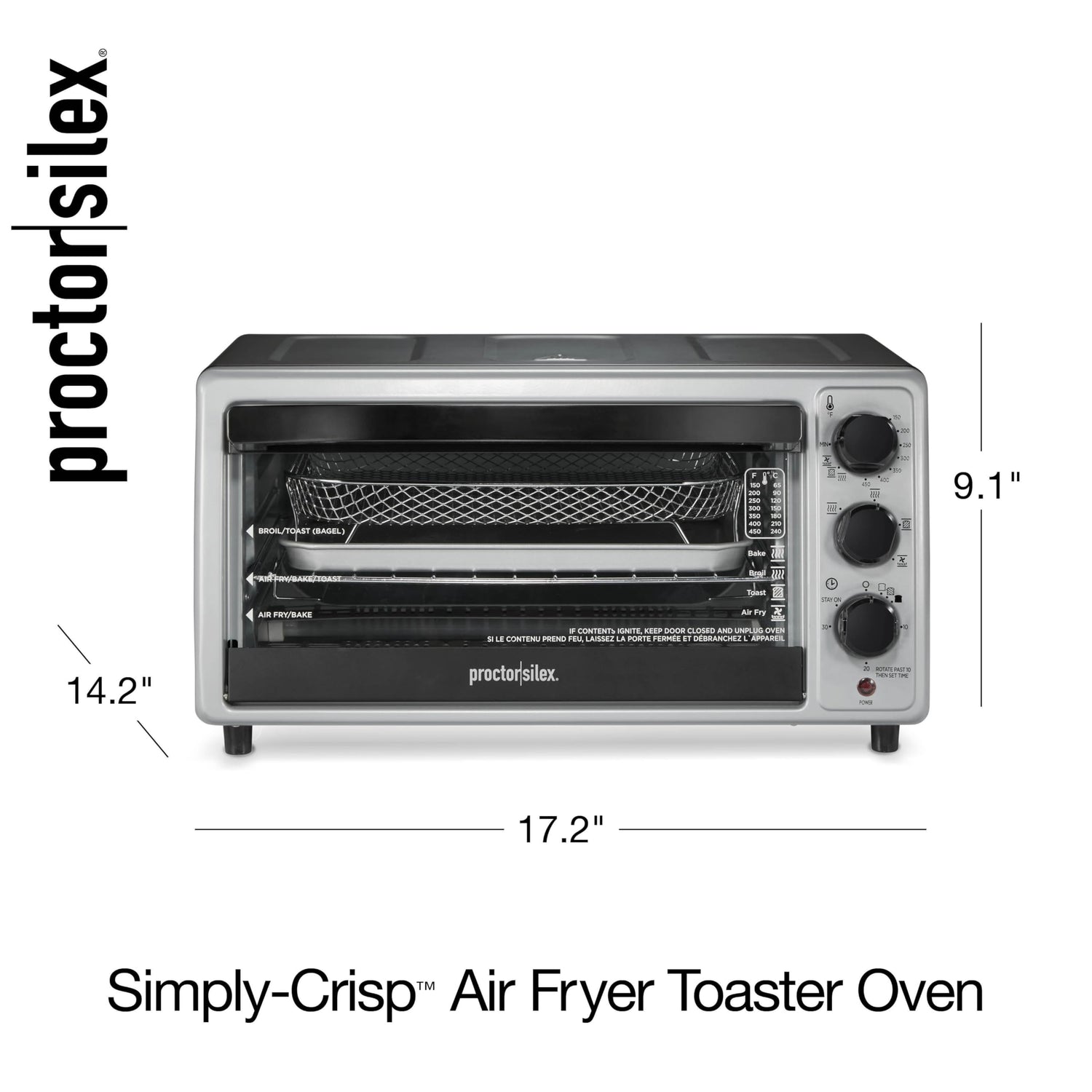 Details: The Proctor Silex® Simply-Crisp™ Air Fryer Toaster Oven creates evenly browned, crispy foods with Simply-Crisp™ air frying functionality.* Its large, 6 slice capacity and versatile settings let you air fry, bake, broil or toast a variety of foods.
