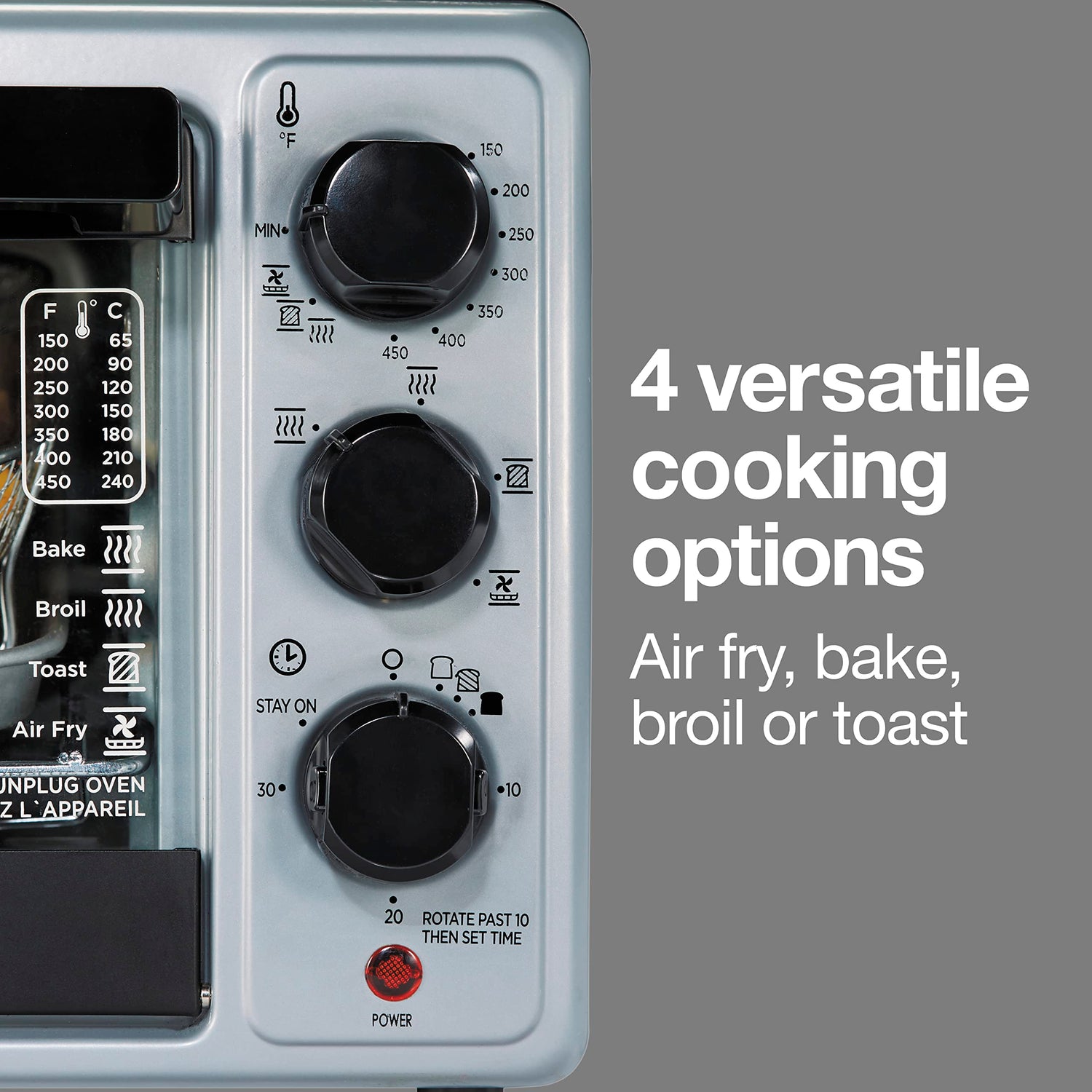 - AIR FRYER CONVECTION OVEN WITH 4 VERSATILE COOKING OPTIONS: You get the convenience and deliciousness of crispy air frying along with all the classic toaster oven functions you love: bake, broil and toast.