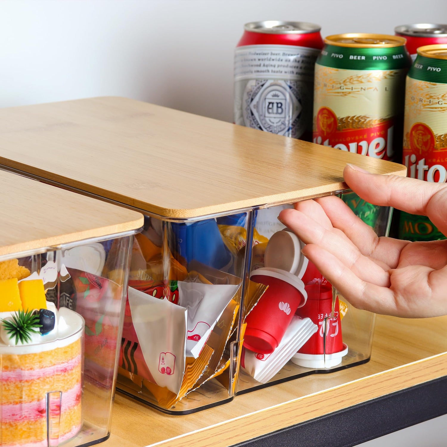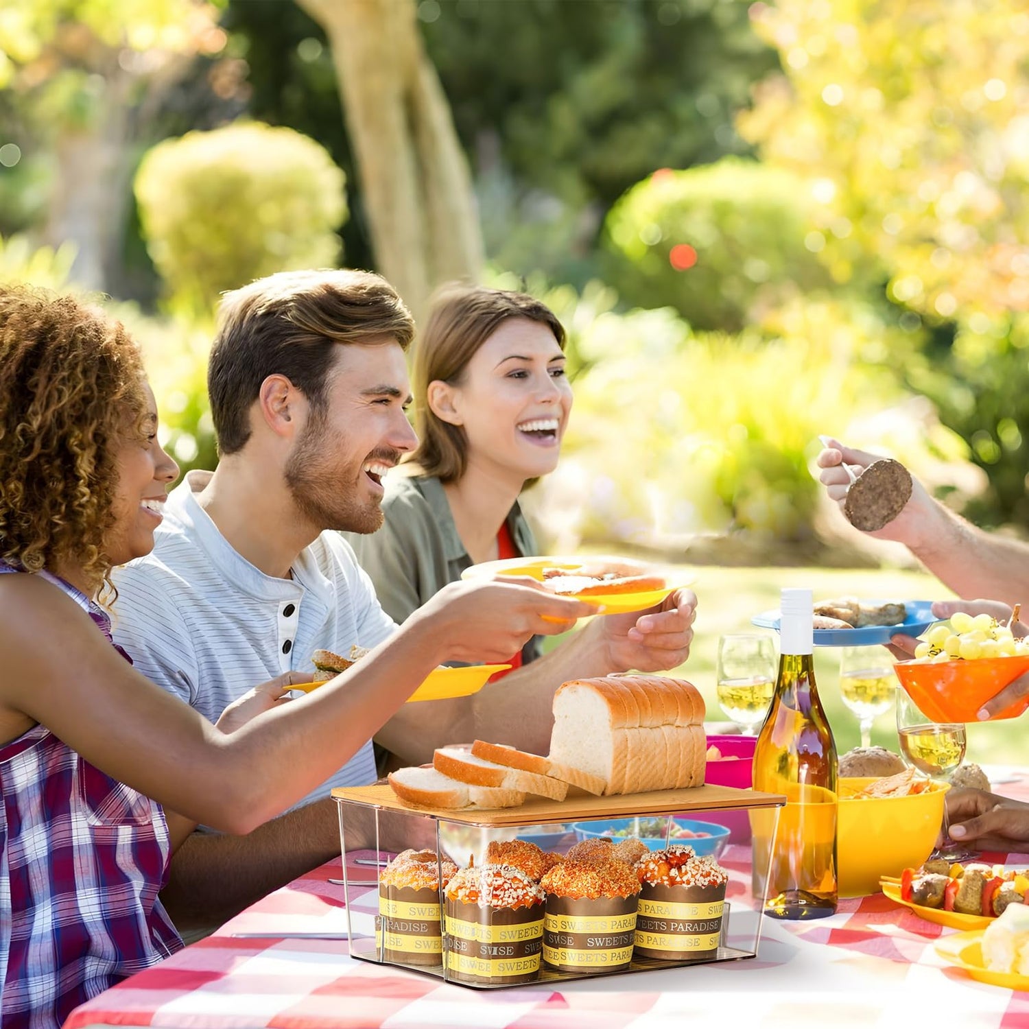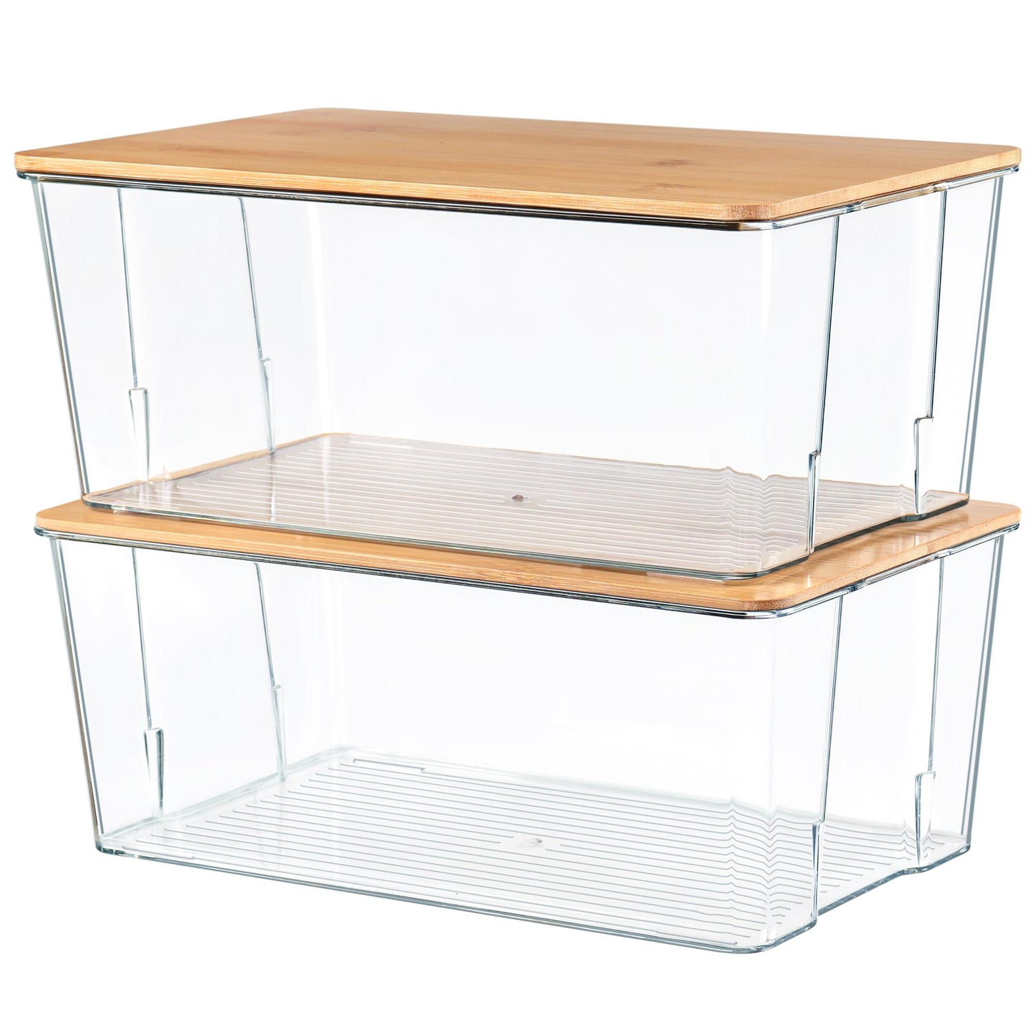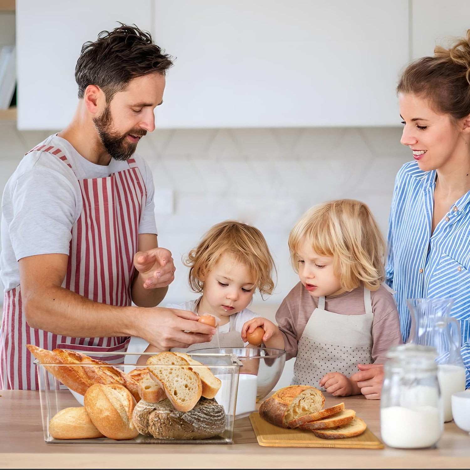 Qilinba 2 Pcs Clear Bread Box with Bamboo Board Lid for Kitchen Countertop, Bread Storage Container for Homemade Bread