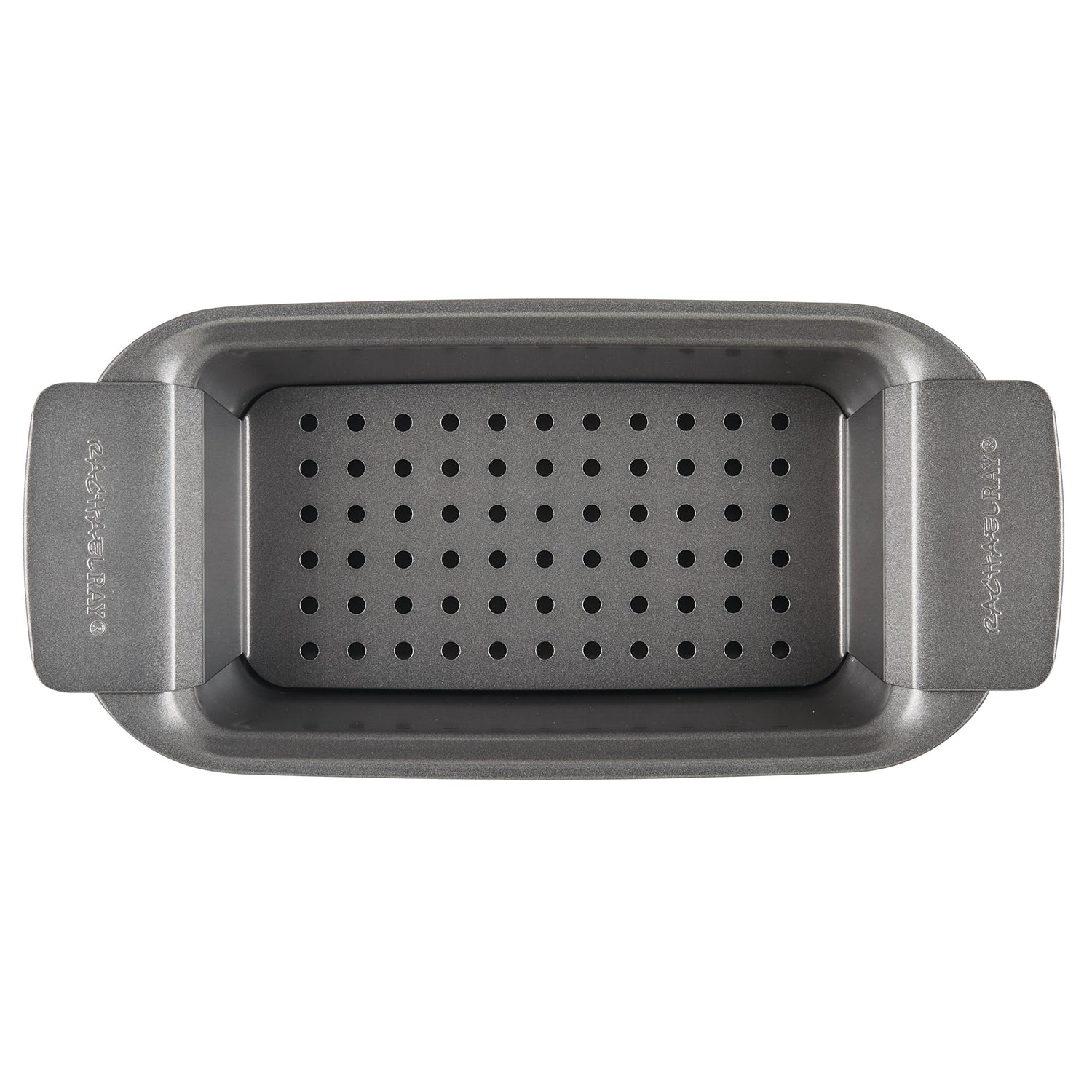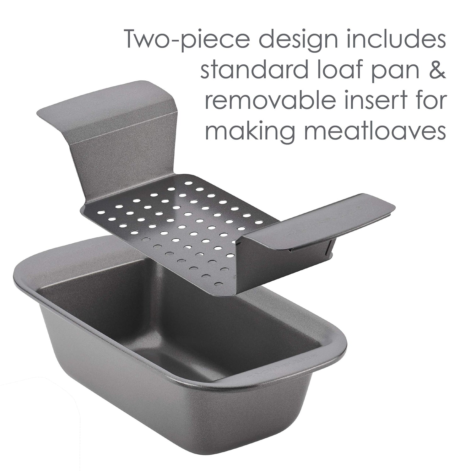 Rachael Ray Bakeware Meatloaf/Nonstick Baking Loaf Pan with Insert, 9 Inch x 5 Inch, Gray