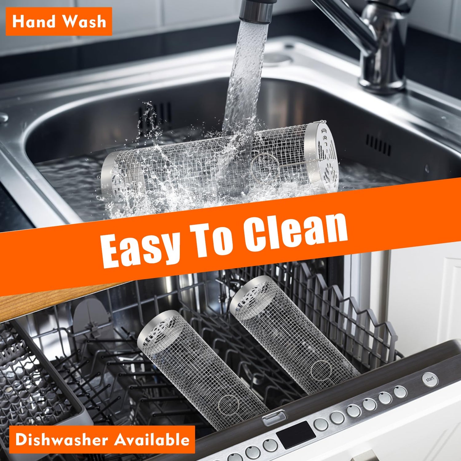 • 【Easy to Cleaning】Rolling grill baskets easy to cleaning, dishwasher or hand washing, It supports dishwashers and hand washing, If you want to add shine to it, you can soak the Grill BBQ Net tube with cleaning supplies in advance, then use a wire brush (preferably a wire brush with a handle for safety) to simply brush it or rinse it with a high-pressure water gun, then rinse it with clean water and let it dry.