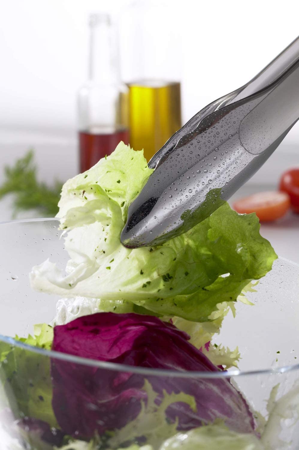 These beautifully designed One Hand Operation Locking Tongs are versatile kitchen aids and currently available in three sizes- 9, 12 and 16 inches. They are quick and efficient for lifting and turning at the grill plus they are a versatile all purpose tool, perfect for handling all kinds of food. Use and application: 1) When opening the tongs, hold them with the tips facing downward; 2) Light pressure will release the locking mechanism opening the tongs; 3) for locking, hold the tongs so the tips face upward; 4) The tongs will automatically lock into a closed position when light pressure is applied with one hand. Dishwasher safe. Lifetime Warranty