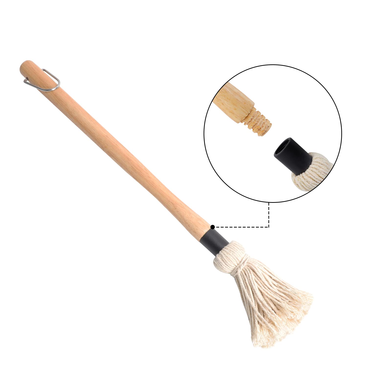 - Unique Wood Handle Design BBQ Mop: Experience the difference with SafBbcue's unique wood handle design. Our basting brushes feature a thread connector that securely connects to the mop head, ensuring durability and stability during use. With a smooth-sanded wood handle that's long and sturdy, our brushes are easy to grip, keeping your hands away from the heat of the grill. Plus, the long wooden handle makes cleaning a breeze, doubling as a bottle cleaner brush for jars, bowls, and bottles.