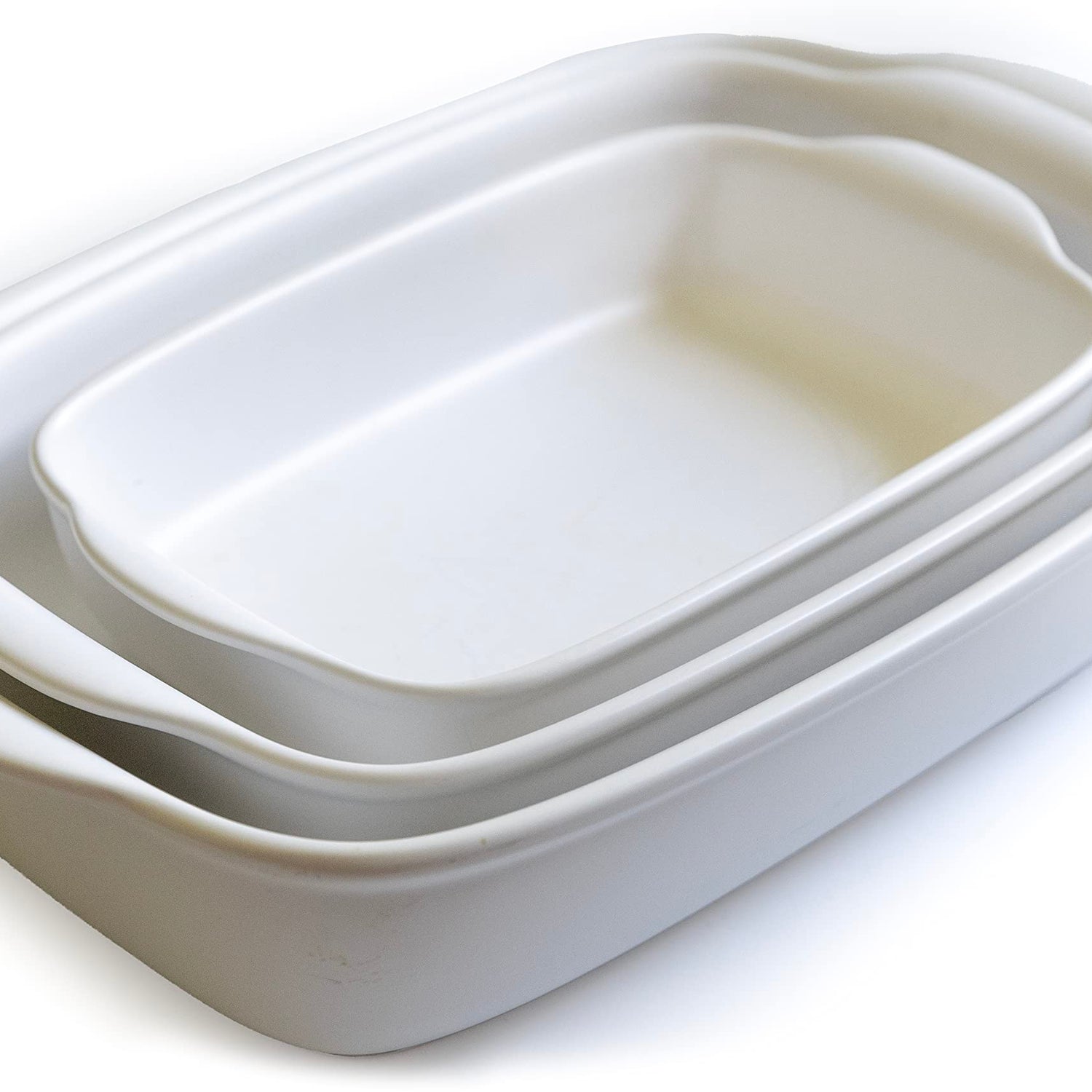 Saffron & Sage Casserole Dish Set of 3 - Baking Dishes for Oven, Contemporary White Ceramic Baking Dish Set, Heavy Duty Bakeware, Up to 500° High Heat Resistant, Dishwasher, Freezer and Food Safe