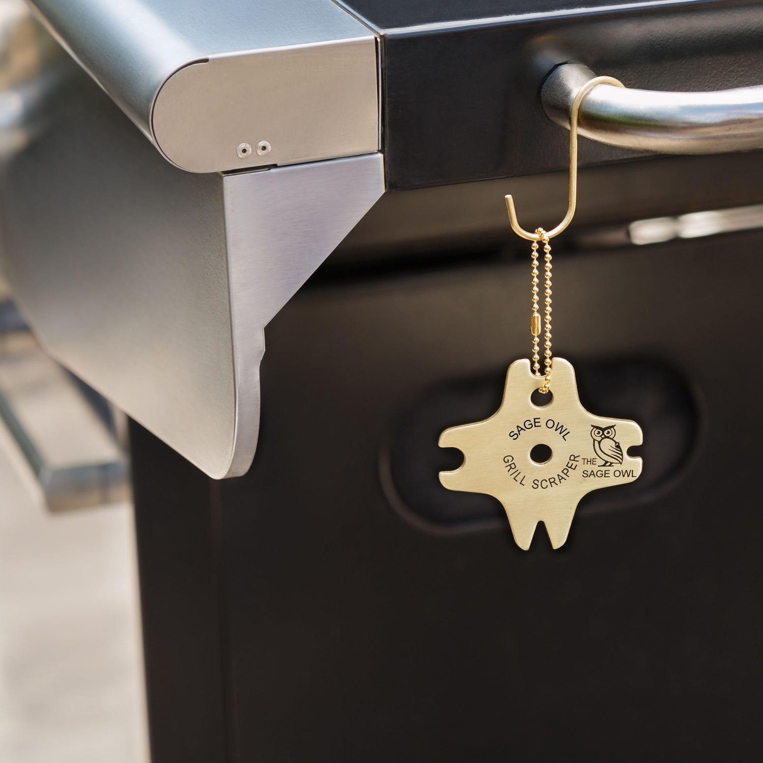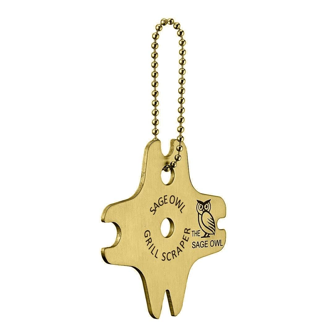 Sage Owl Bristle-Free Brass BBQ Grill Scraper – Safe Grill Cleaner for Outdoor Grills, Porcelain Grates, Smoker Accessories, Cooking Gadgets, and Barbecue Grilling Tools – Small Gifts for Dad
