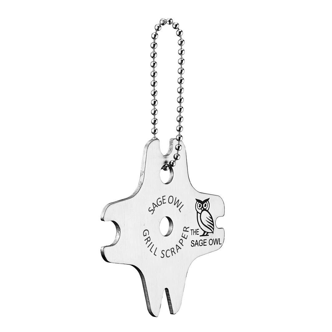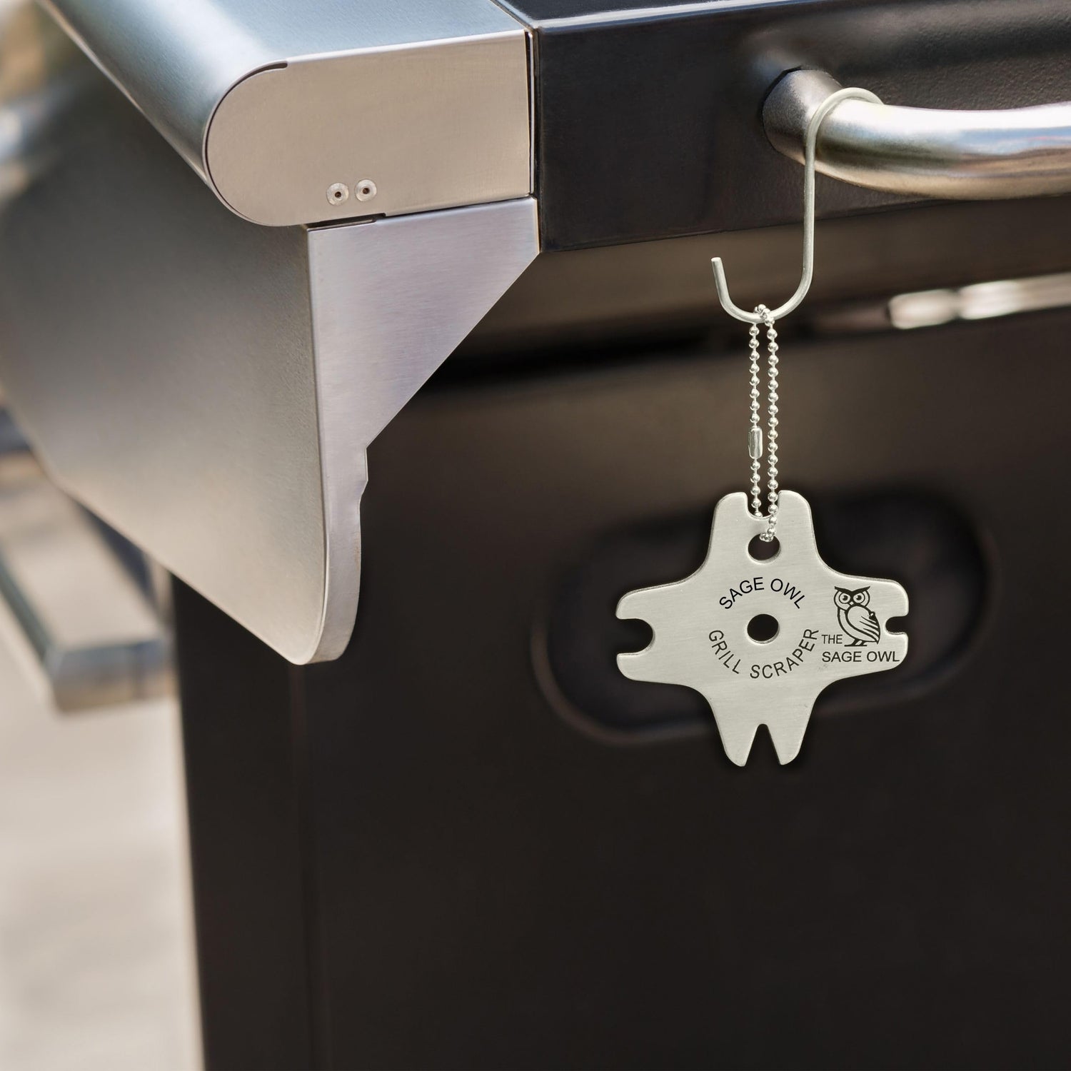 Sage Owl Bristle-Free Stainless Steel BBQ Grill Scraper – Safe Grill Cleaner for Outdoor Grills, Smoker Accessories, Cooking Gadgets, and Barbecue Grilling Tools – Ideal Mens Stocking Stuffers