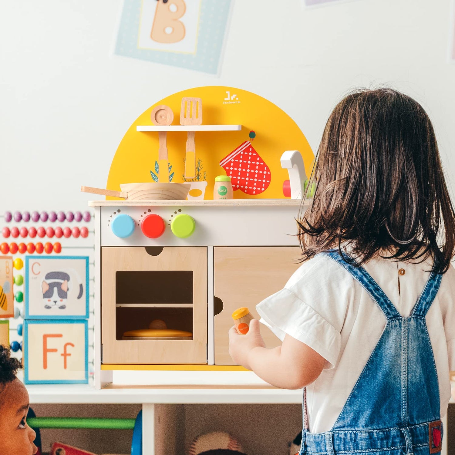 SainSmart Jr. Wooden Kitchen Playset, Cooking Pretend Play Set with Food Accessories Toy for Kids and Toddlers