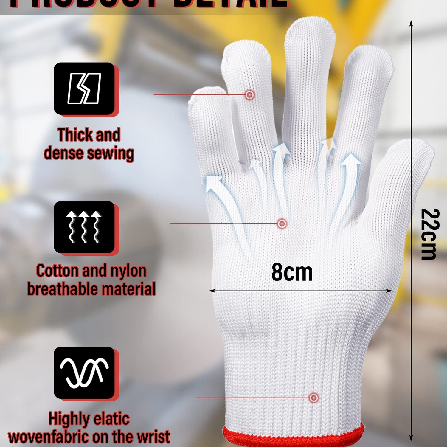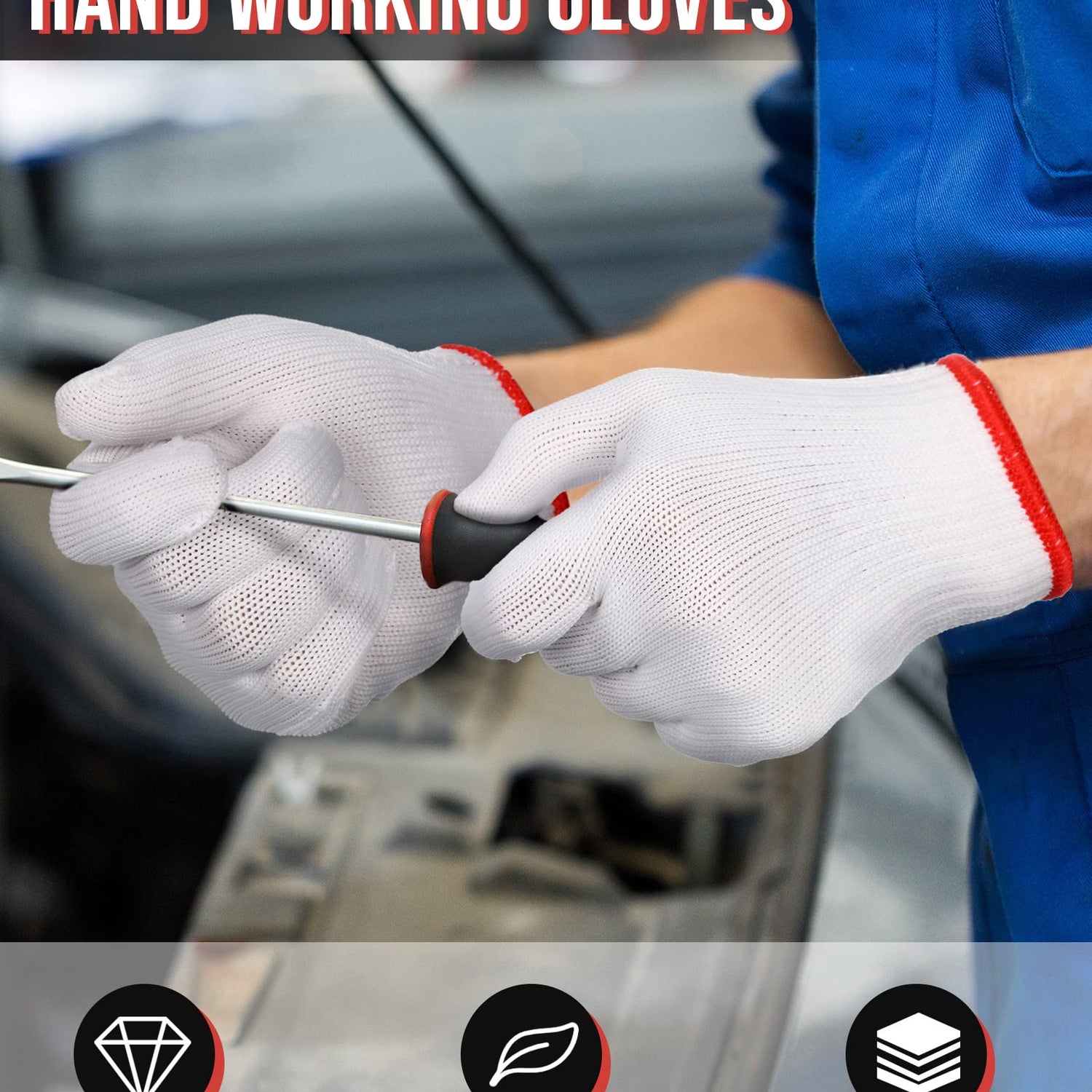 • Comfortable to wear: safety work gloves are form-fitting, cool, and snug, making them nice general-purpose gloves, seamless polyester knit shell is comfortable and flexible and the cotton knit is soft against the skin, so these white gloves are comfy enough to wear for long periods