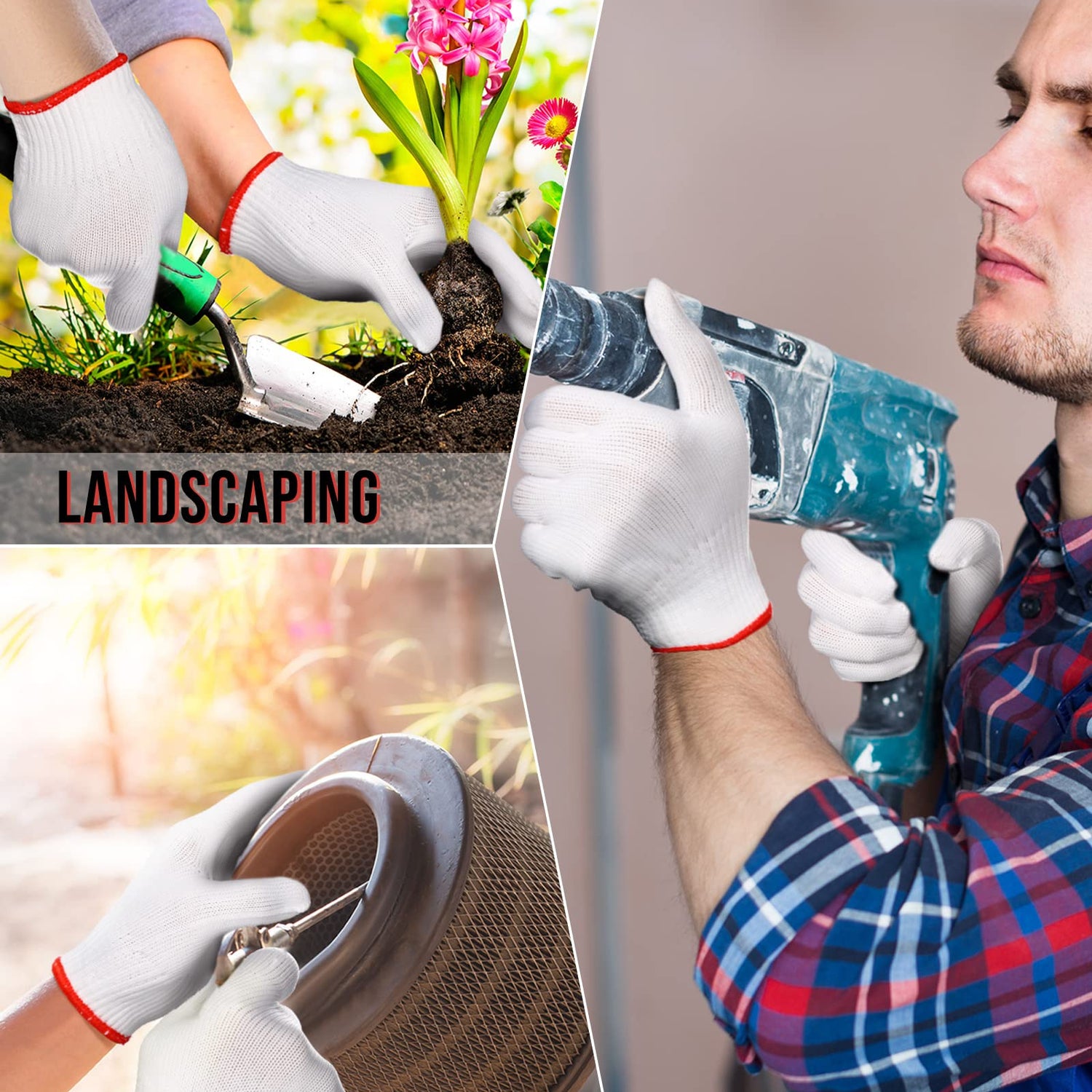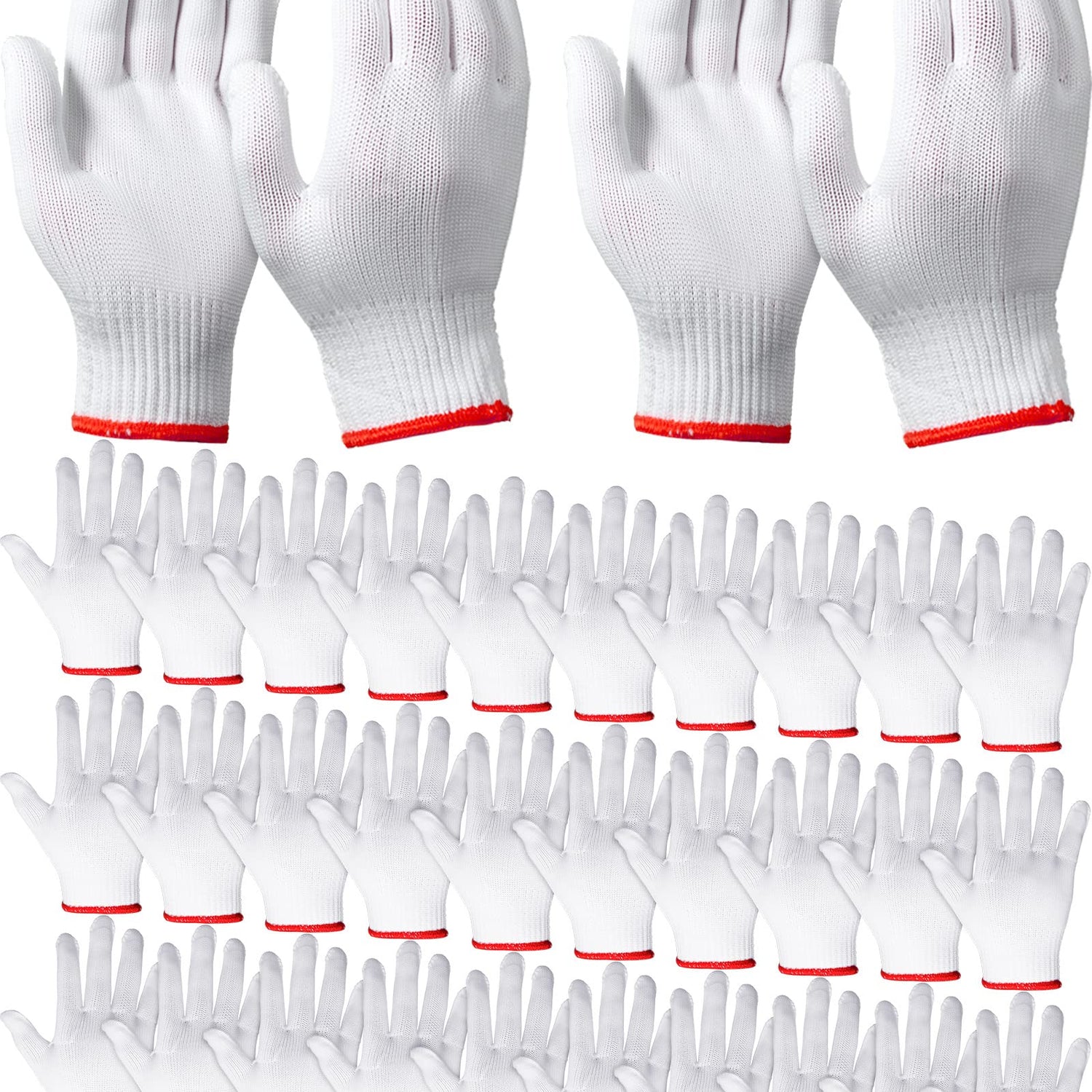• Material: white work gloves are made of comfortable cotton, polyester materials, which can improve air circulation in and around the hands to keep hands dry and healthy; Elastic knit wrist helps to prevent dirt and debris from entering the white glove and ensure that the gloves will stay in place while you're busy working
