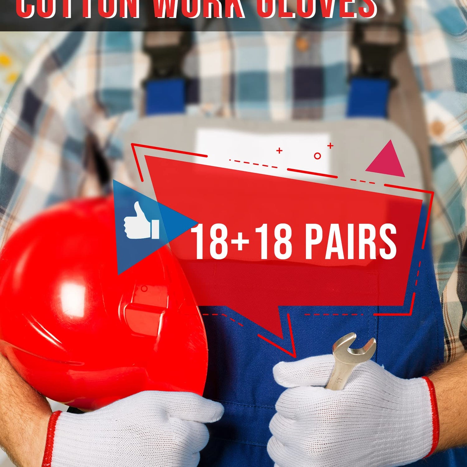 SATINIOR 36 Pairs Hand Work Gloves White Cotton Liners Gloves Safety Work Gloves Liners Men Women Cotton BBQ Gloves (Red Edging), One Size