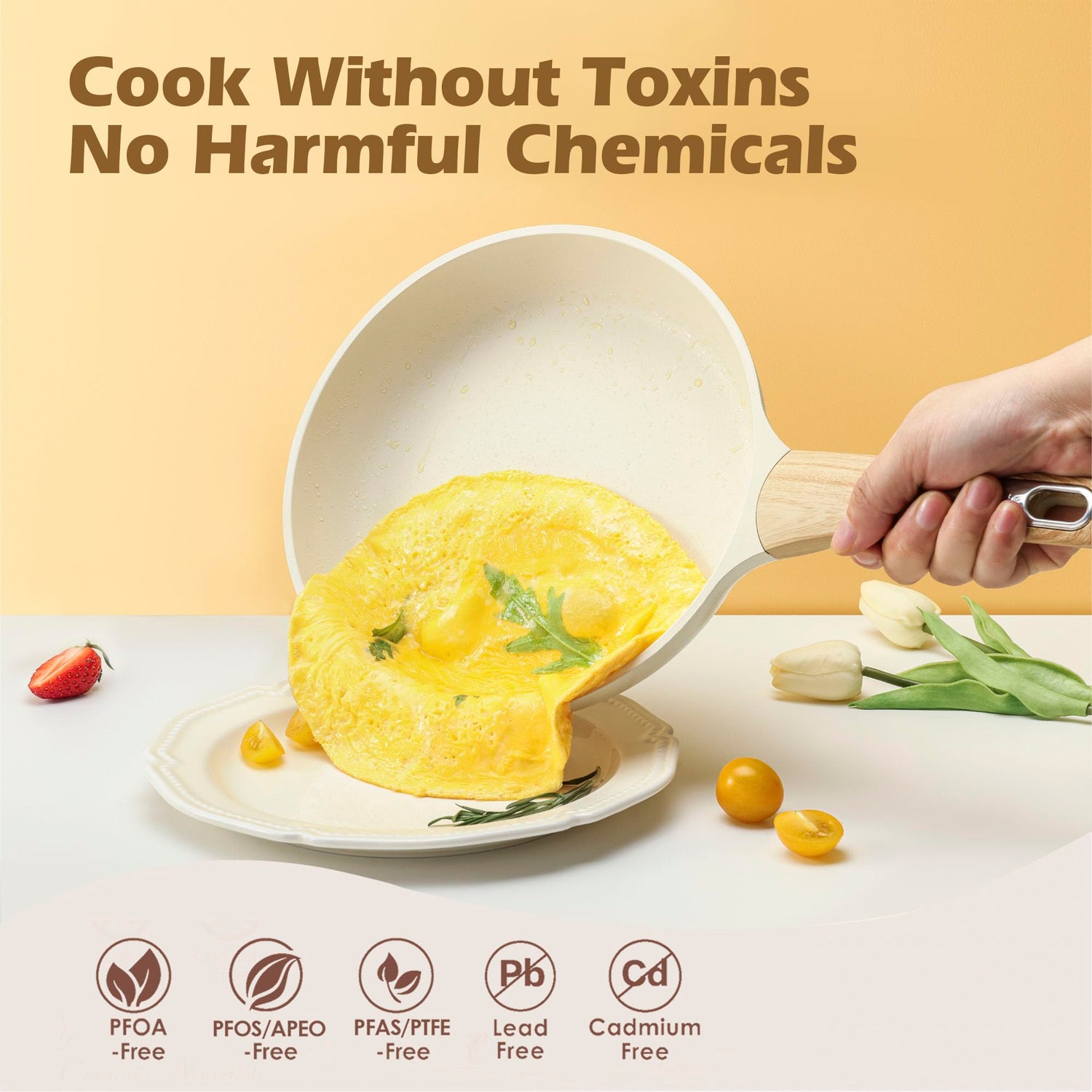 - Healthy Ceramic Cookware Sets - SGS approved. Non-toxic, free of PTFE, PFAS, PFOA, PFOS, lead, cadmium and other toxic substances that can leach into food.
