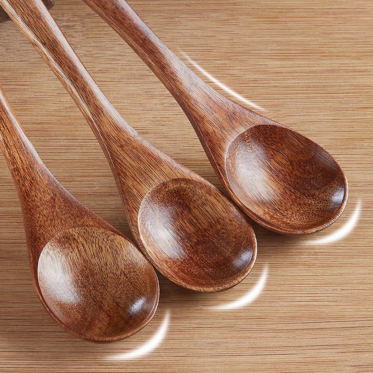 - EXQUISITE WORKMANSHIP: Our small wooden spoon is made of high quality natural wood. Each condiments wooden spoon is polished after production, making it smooth and durable. The warping cracks are not easy to occur even under the condition dry and wet changes tremendously.