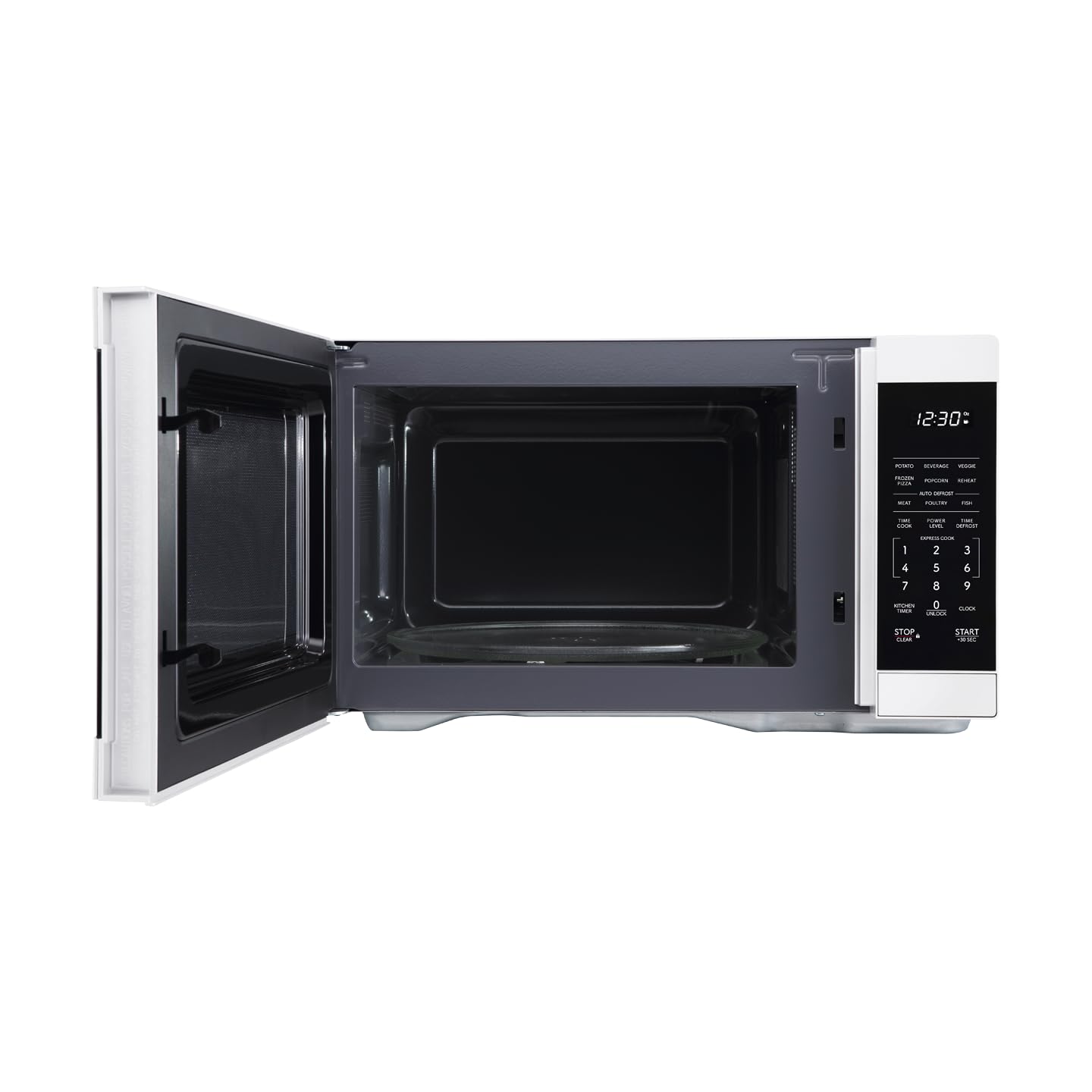 - Medium-sized 1.1 cu. ft. capacity, 1000 watts, Black/White