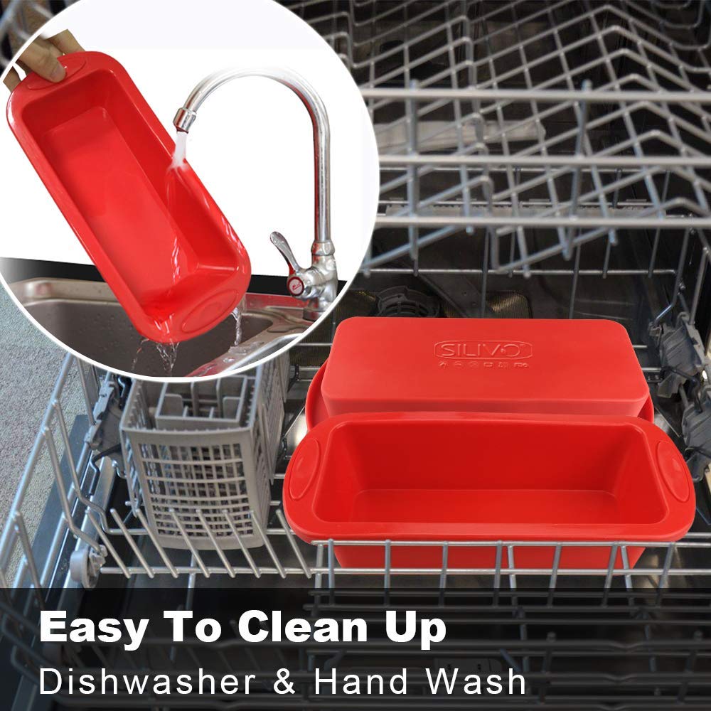 SILIVO Silicone Bread and Loaf Pans (2 Pack) - Nonstick Silicone Baking Mold for Homemade Loaf, Bread and Meatloaf - 8.9x3.7x2.5 inch