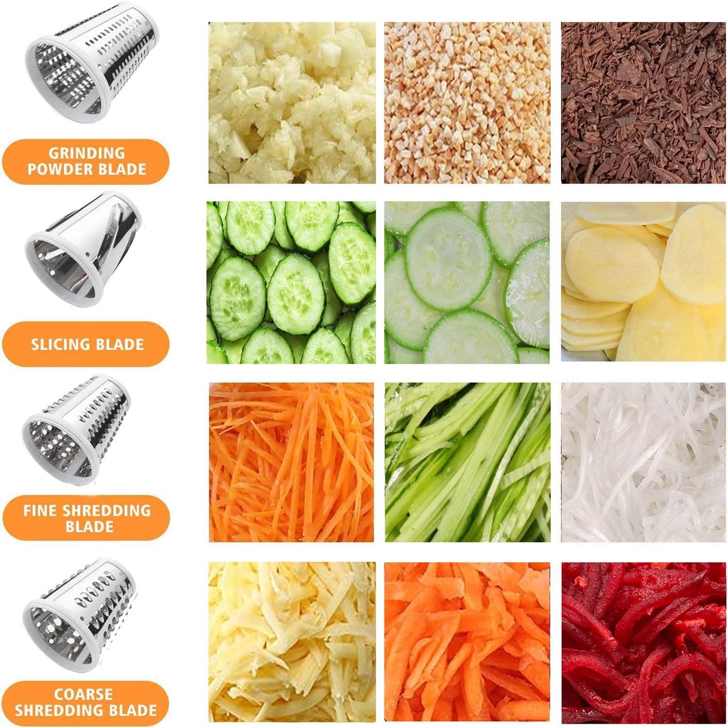• 【Versatility Salad Maker 】- Airpro's accessories and attachments has 4 interchangeable blades, use them to easily slice, shred, and grate food,great for grating cheese,zucchini,cucumbers, onion,carrots,potato, crackers,chocolate,peanuts,almonds,ice cubes and much more,use them for salads,coleslaw,pizza toppings,tacos,desserts,smoothies and more dishes.