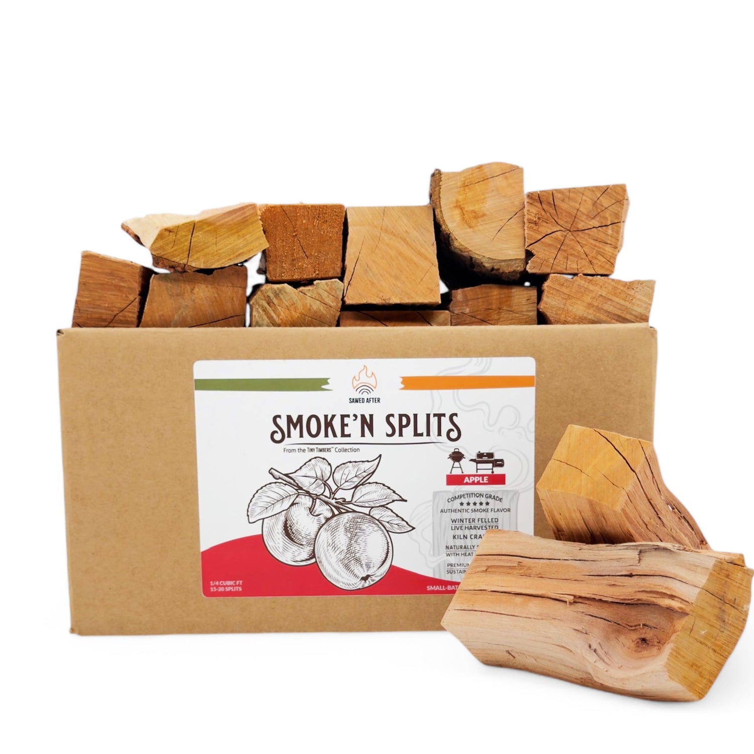 Smoke'n Splits by Tiny Timbers USDA Grade Kiln Dried Hardwood Cooking Chunks for Smokers & BBQ Grills | 5" Short Splits | USA Sourced | 6 lb. | 400+ cu. in. | Apple Wood
