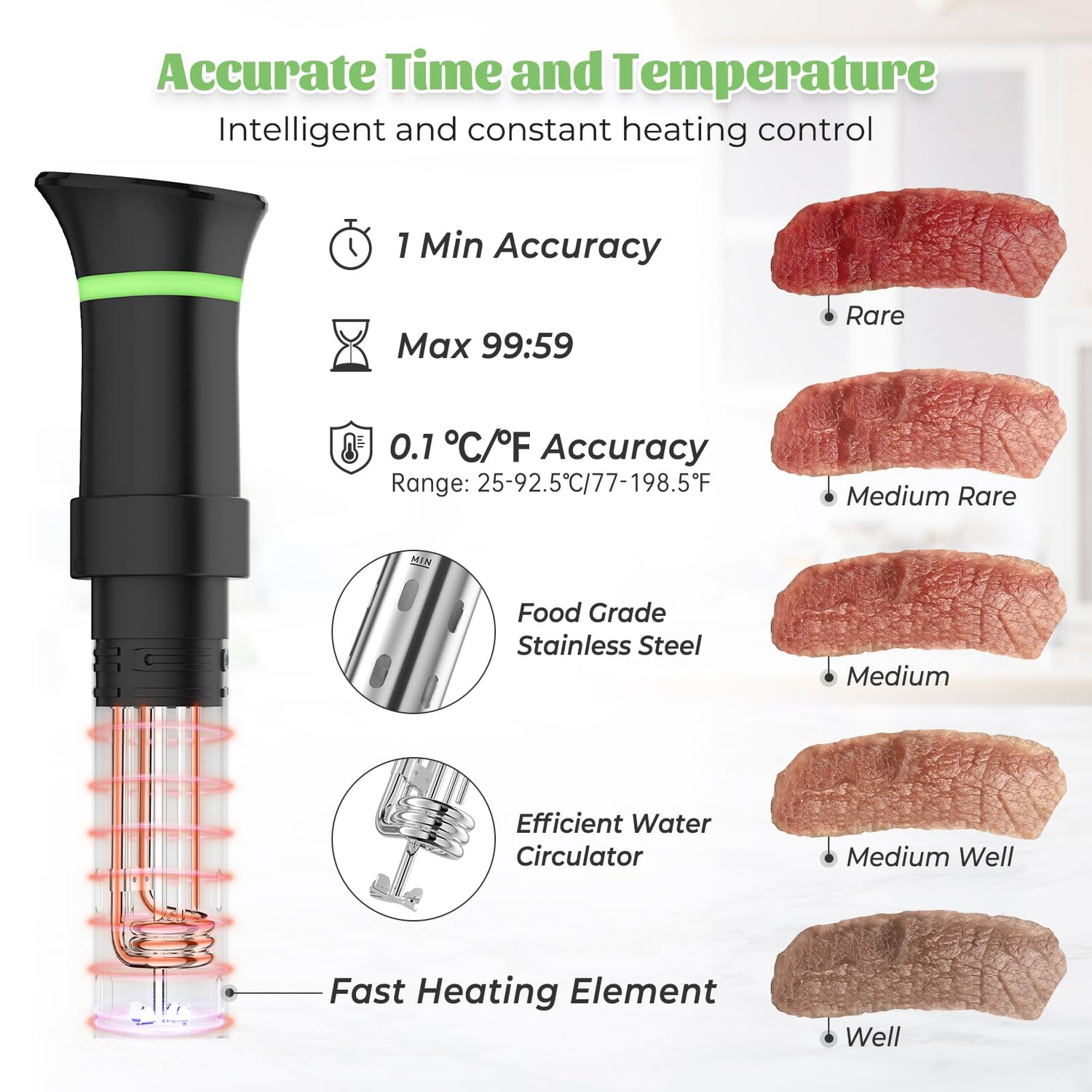 - Accurate Control: Based on thousands of food tests, this sous vide cooker could accurately control cooking time and temperature