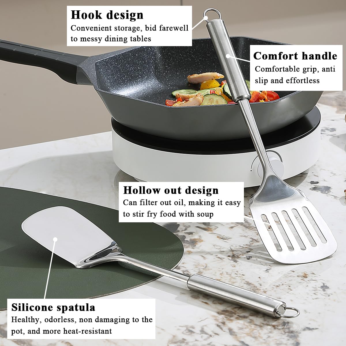 - TWO-PART DESIGN: The set contains 1 spatula and 1 slotted spatula, suitable for stirring ingredients and turning food while cooking.