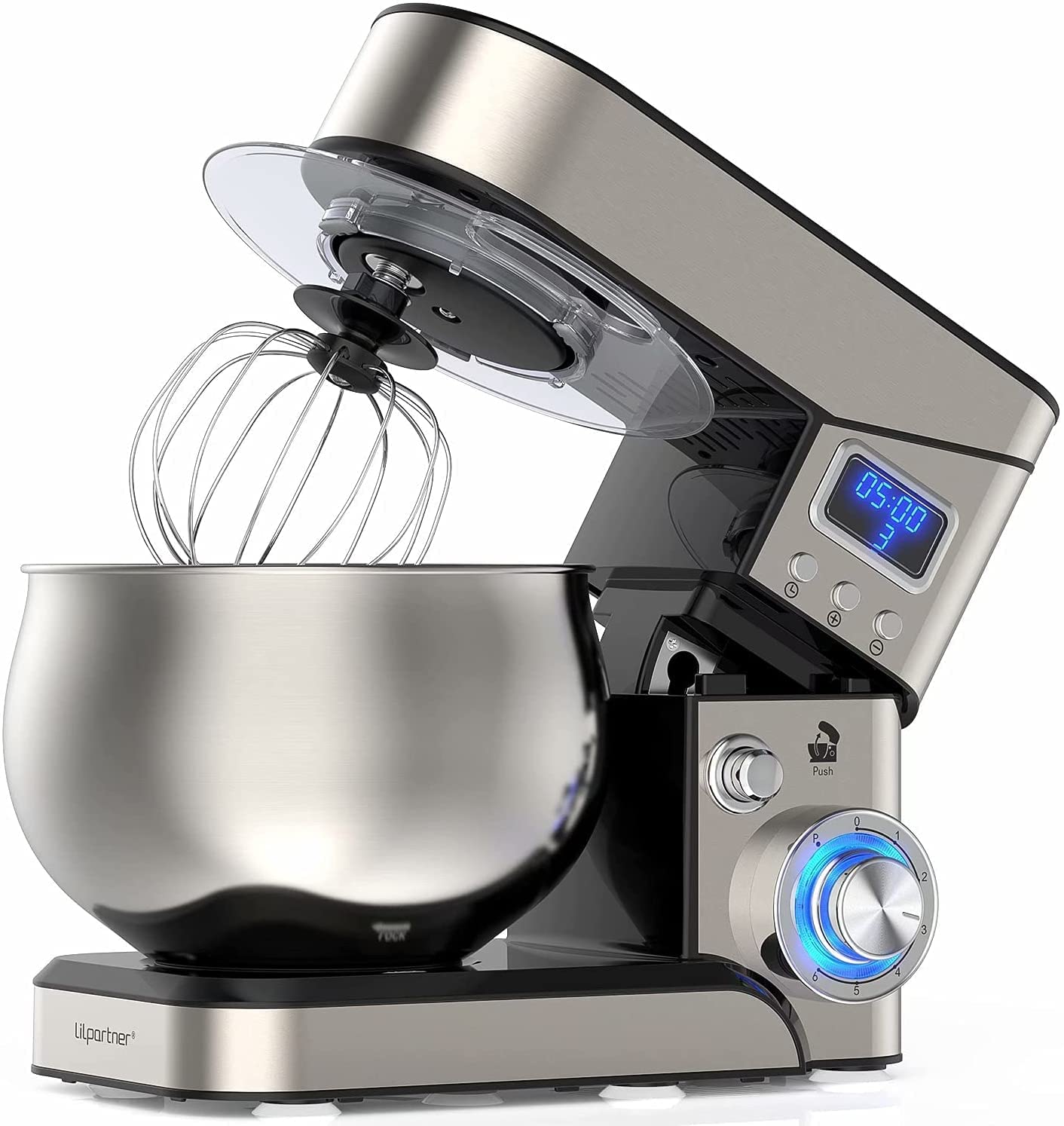 Stand Mixer, Stainless Steel Mixer 5.3-QT LCD Display Food Mixer, 6+P Speed itchen Electric Mixer Tilt-Head Mixer with Stainless Steel Bowl, Dough Hook, Beater, Whisk