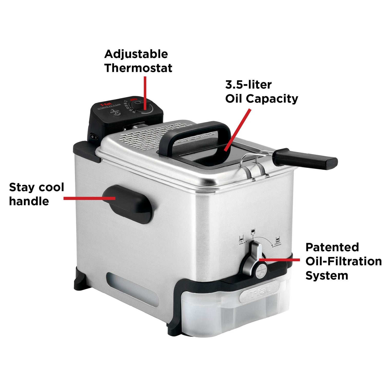 T-fal 3.5L Deep Fryer with Oil Filtration System: 1700W Stainless Steel Fryer, Dishwasher Safe Parts, Digital Timer, Adjustable Temperature Control for Perfect Golden Crispy Results