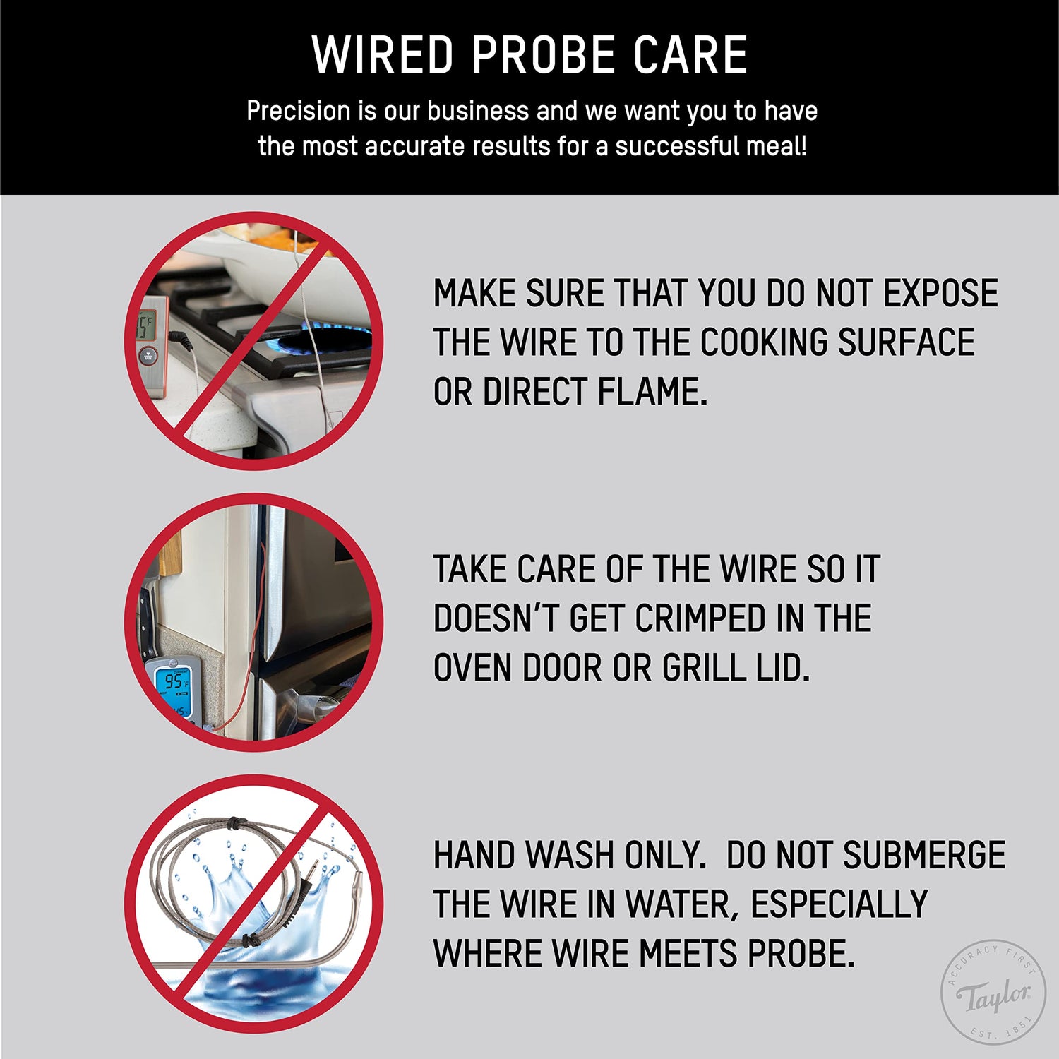 - USE AND CARE: For best results, hand wash the thermometer; do not put thermometer in the dishwasher.