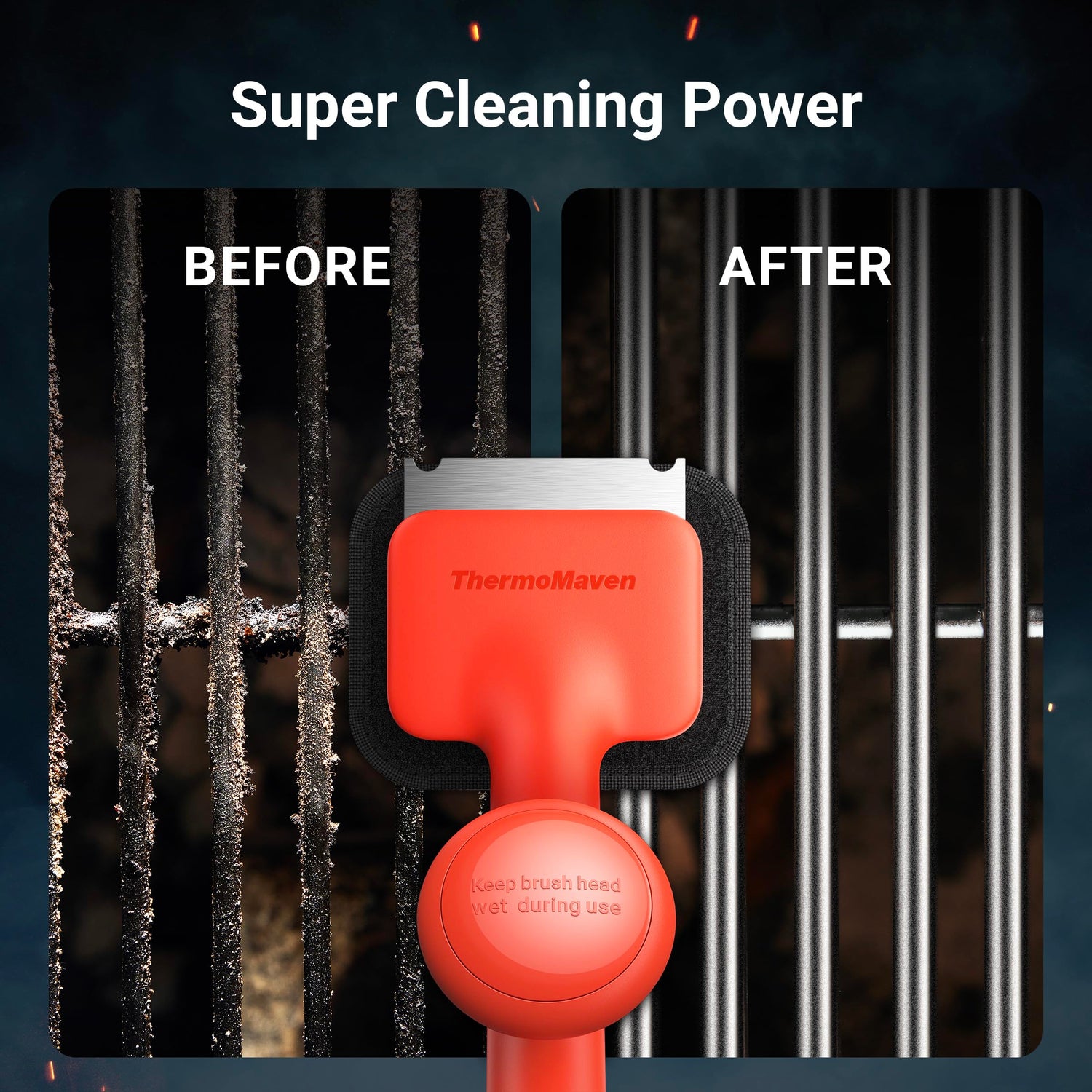 ThermoMaven BBQ Grill Brush Bristle Free - 17" Safe Steam Grill Cleaner Brush with Scraper and 3 Brush Heads for Porcelain/Gas/Charcoal Grill Outdoor Grill Barbecue Cleaner
