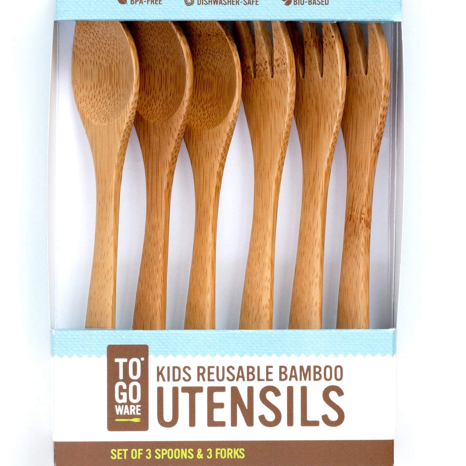TO GO WARE Kid's Bamboo Reusable Utensils | Dishwasher-Safe | No BPA or Phthalate | Made from Durable, Sustainable Materials | Eco-Conscious | 3 Spoons, 3 Forks (Pack of 6)