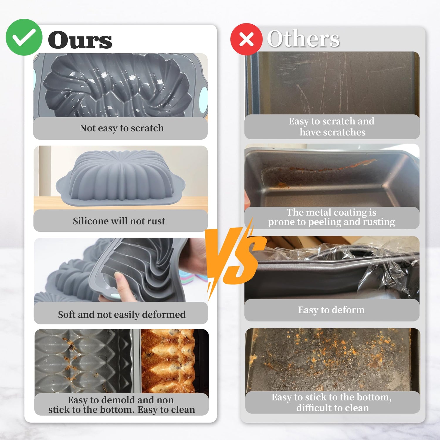 • Easy to Clean - Silicone bakeware is dishwasher safe and easy to clean. It is easy to separate with cake. After using, soak them in warm soapy water. Any leftover crumbs will turn into mush and can easily be washed out with a soft cloth.