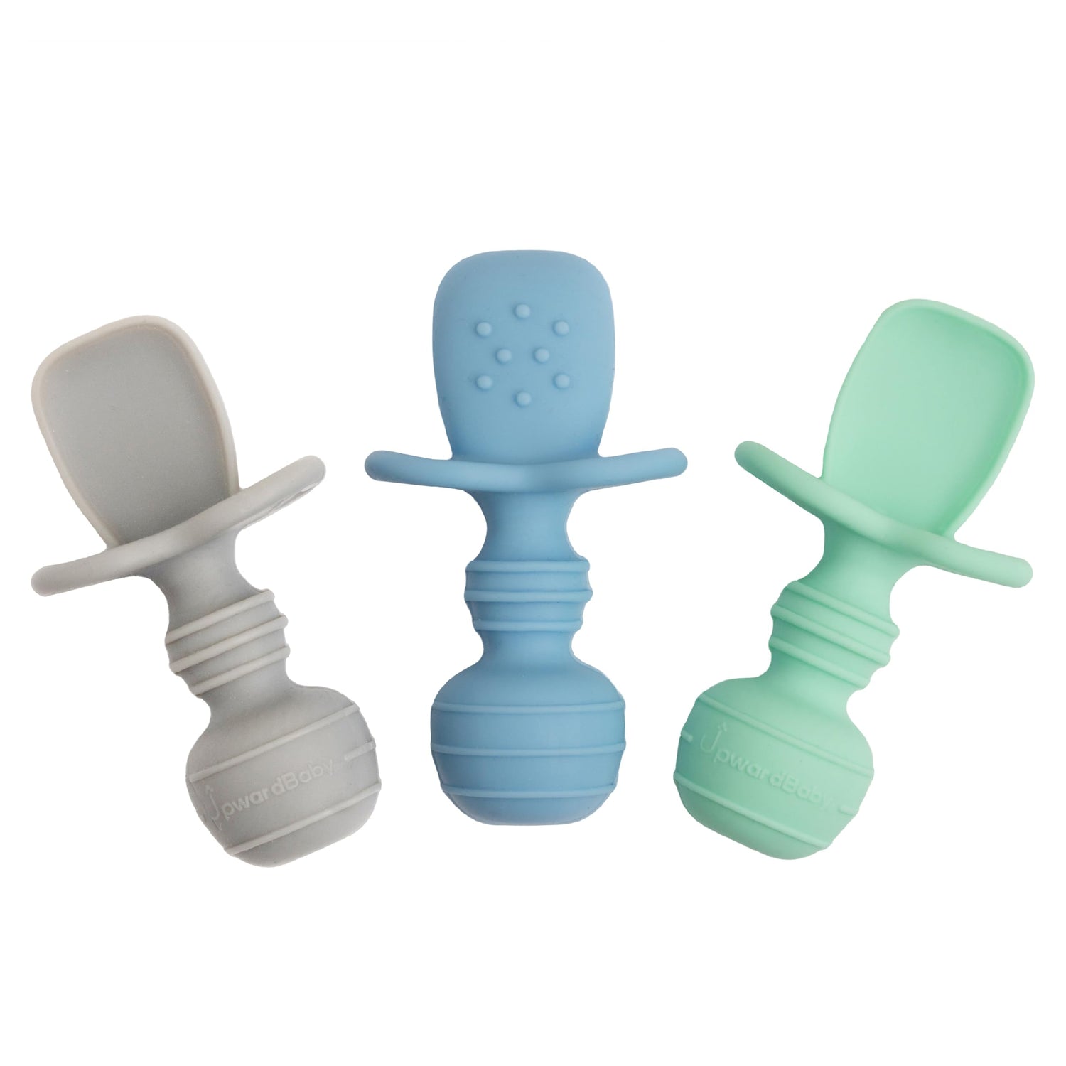 - Perfect Gift For New Parents: The Upward Baby Spoons 3 pack in Grey/Blue/Mint is an excellent choice for baby feeding essentials, whether for a baby shower, baby registry, or welcoming a newborn. Suitable for any gender, these feeding spoons for babies are a thoughtful gift for 4 month old baby must haves