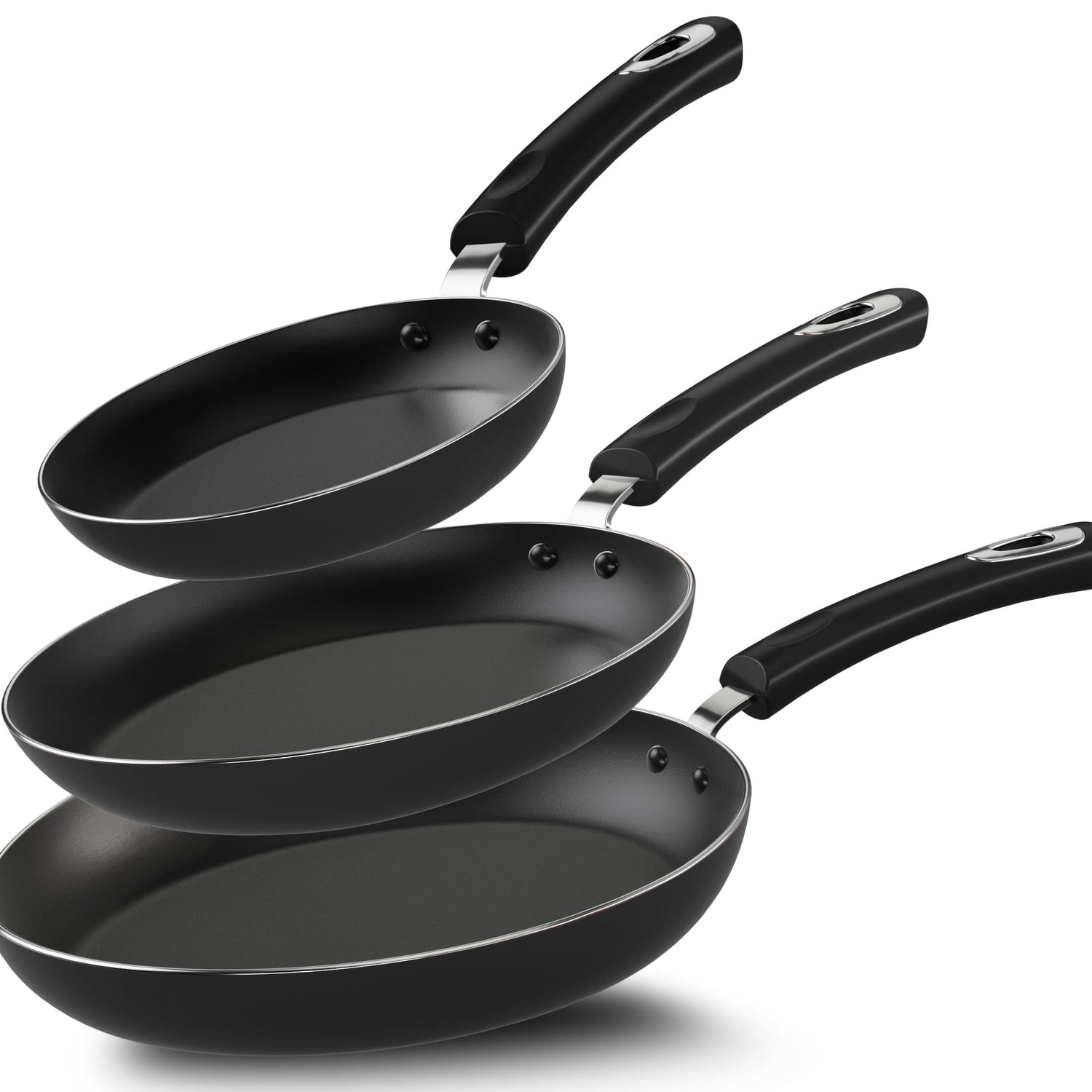 - GLAMORIZE YOUR KITCHEN – Dive into the art of culinary finesse, with our nonstick chef essential set, comprising of a set of 3 Frying Pans, measuring 8 inch, 9.5 inch and 11 inch.