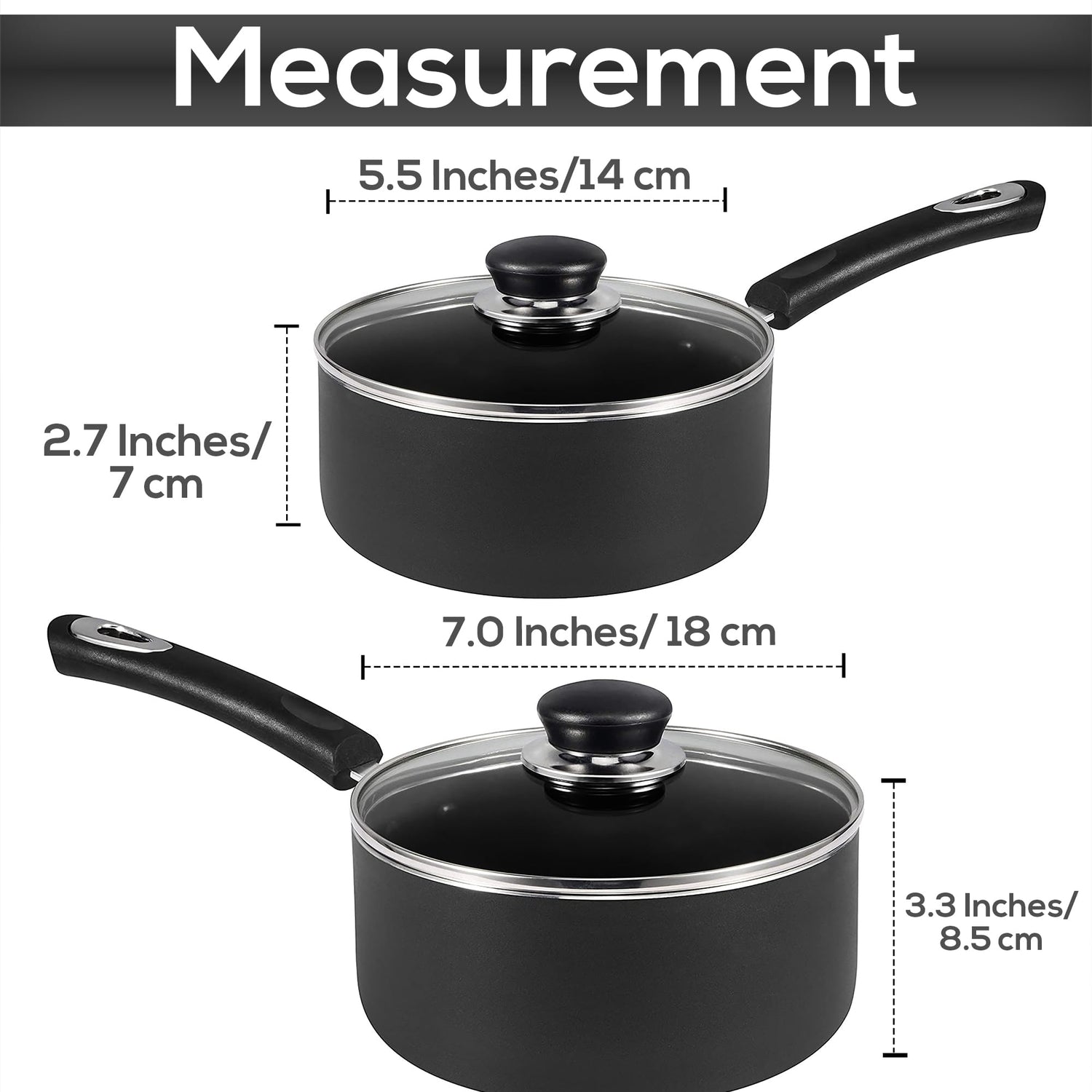 • Set of 2 – The set comprises of one 1-quart saucepan and one 2-quart saucepan; the pans carry a thickness of 3 mm with a 2-layer non-stick coating inside and heat-resistant paint on the outside.