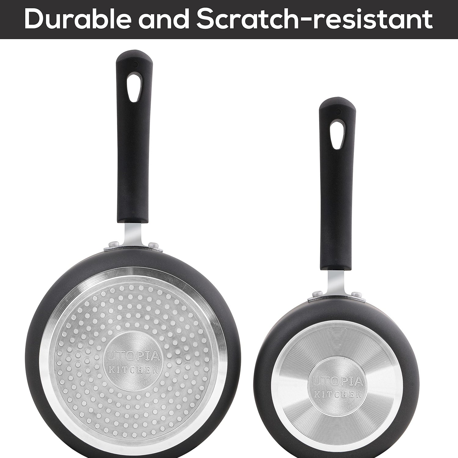 Utopia Kitchen Nonstick Saucepan Set with Lid, 1 Quart and 2 Quarts Multipurpose Pots Set for Home Kitchen or Restaurant (Grey-Black)