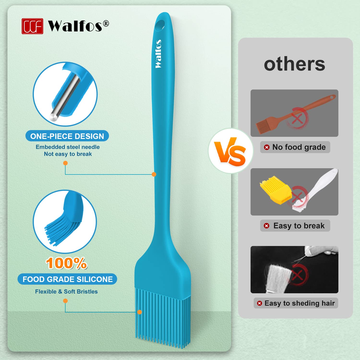 - ★ FOOD GRADE SILICONE, HEAT RESISTANT UP TO 450°F - WALFOS basting brush made of high-quality food grade silicone which is BPA free. Safe to use in Oven, Microwave, Dishwasher & Freezer. Will never melt,discolor or shrink when grilling, basting or cooking (unlike some plastic, nylon or wooden brushes).