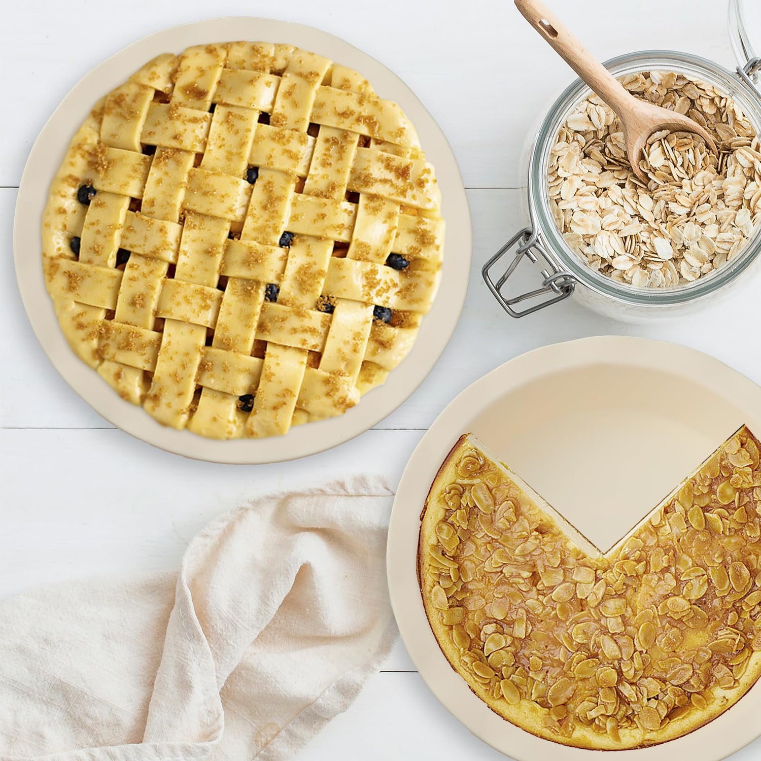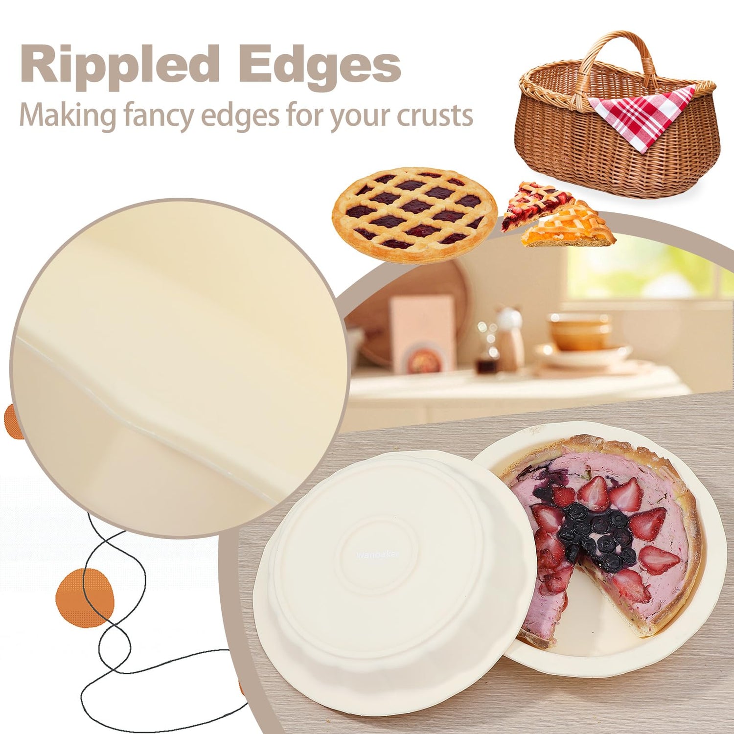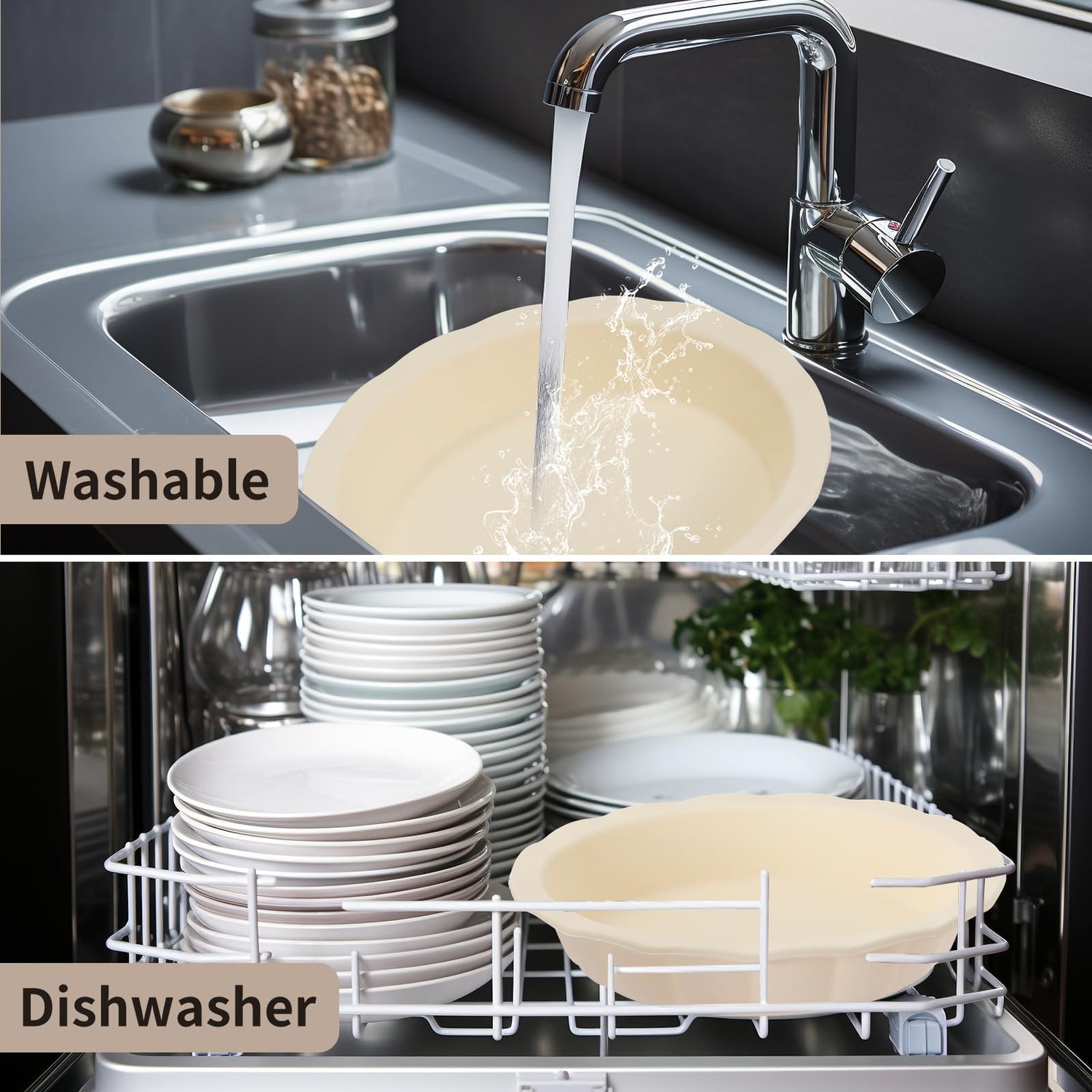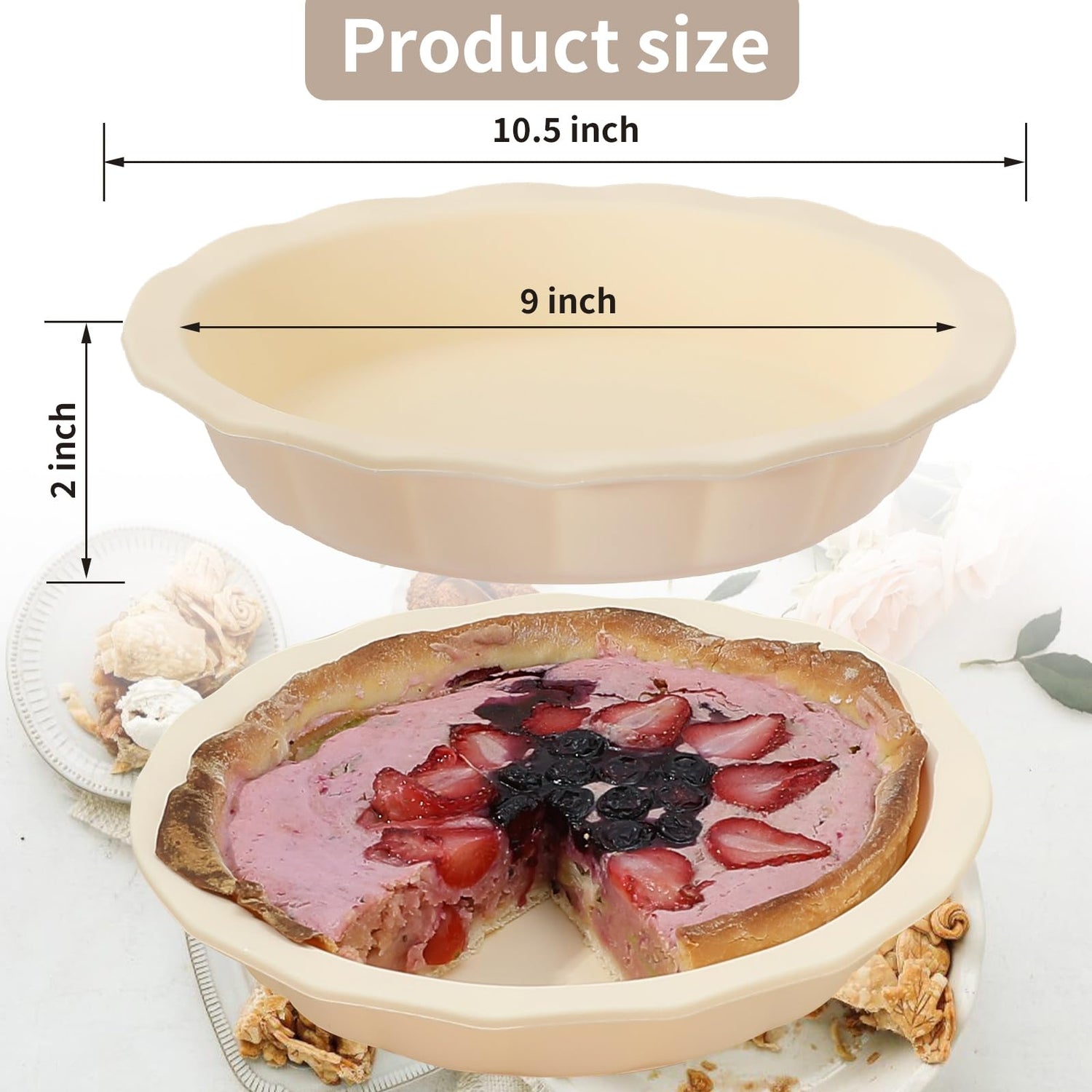 Wanbaker Silicone Pie Pans Dishes for Baking, 9inch Pie Dishes with Corrugated Edge Dishwasher Microwave Oven Safe (Beige)
